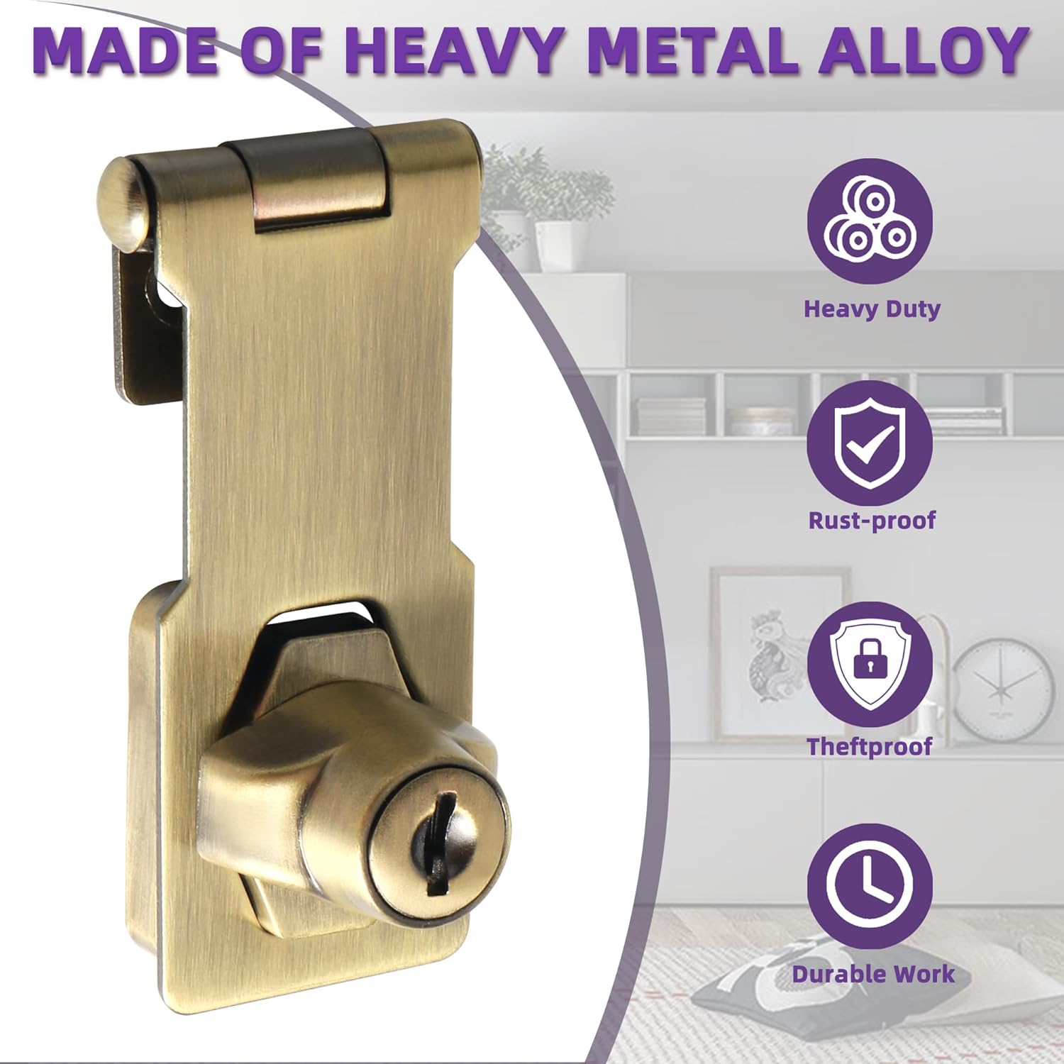 Alise Keyed Hasp Lock,3 Inch Safety Packlock Clasp Hasp Lock Latch with Lock,Door Hinge Lock with Keys Keyed Locking Hasp for Cabinets Closets Doors,Bronze