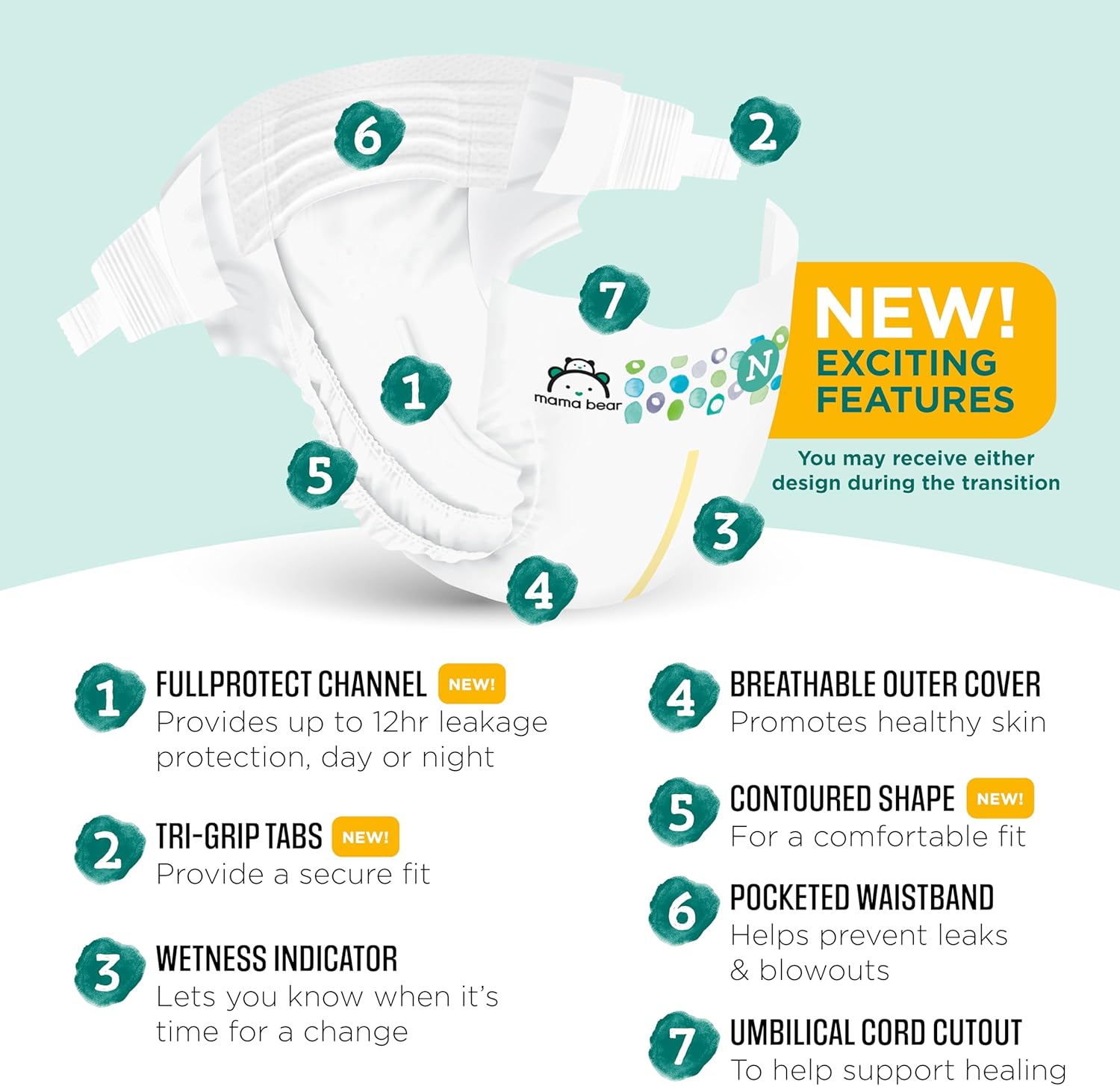 - IN THE BOX: Mama Bear Gentle Touch diapers for babies; size NB; (4 packs of 30 diapers each, 120 total)