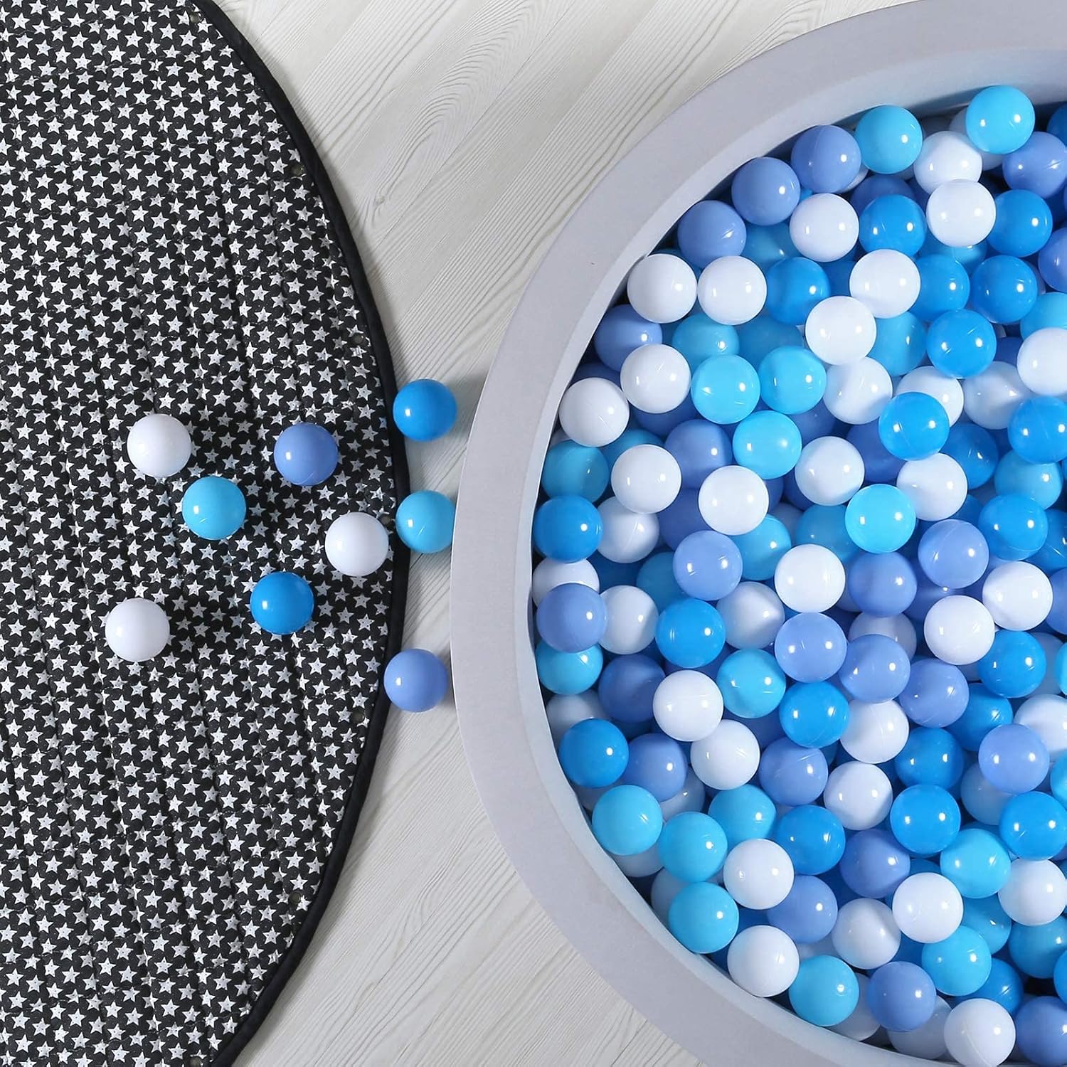 - FULL OF FUN - Bright colors will attract your children and keep them entertained for hours. Grasping, throwing, even shooting a basket in the pool. You can also choose match the color to your playroom decor.