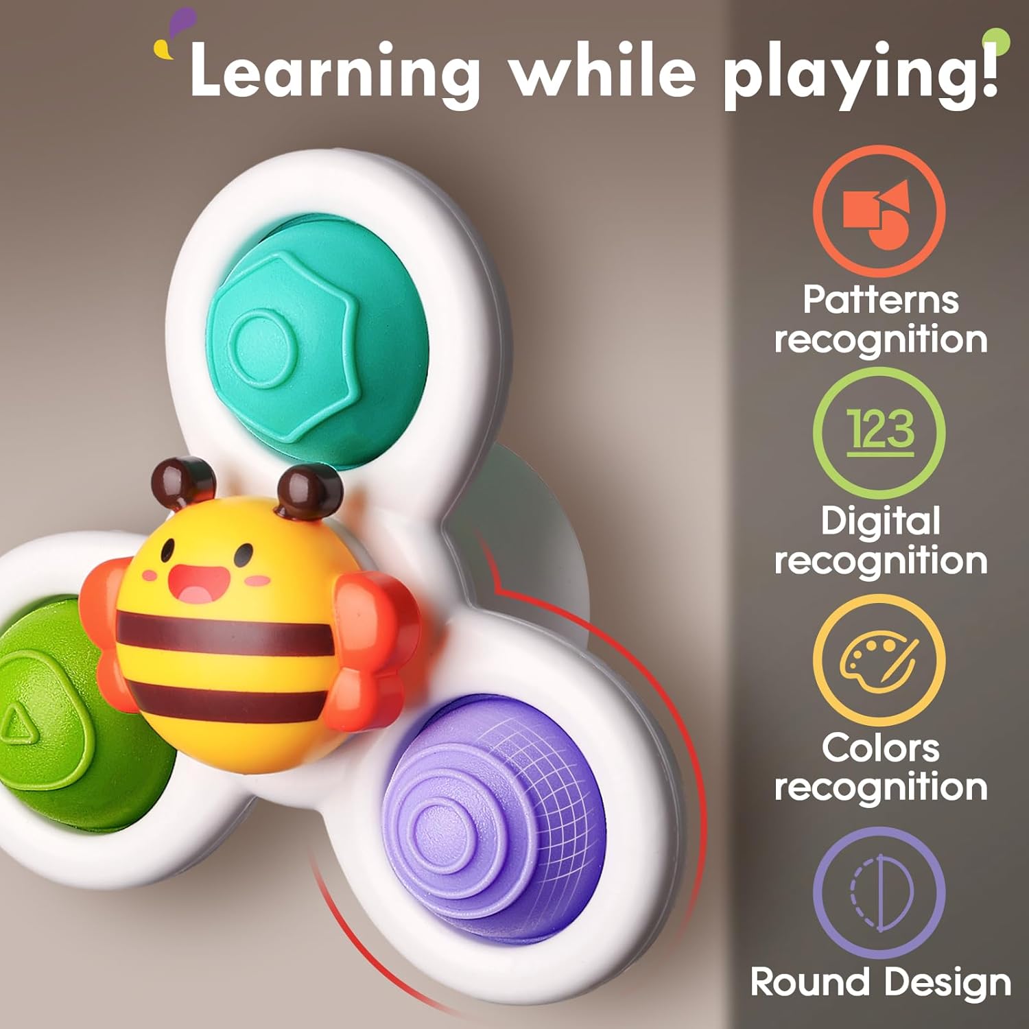 ALASOU 3PCS Pop Suction Cup Spinner Toys for 1 Year Old Boy Girl|Novelty Spinning Tops Toddler Toys Age 1-2|Sensory Baby Bath Toy for Toddlers 1-3|12 18 Months Boy Birthday Gift for Infant