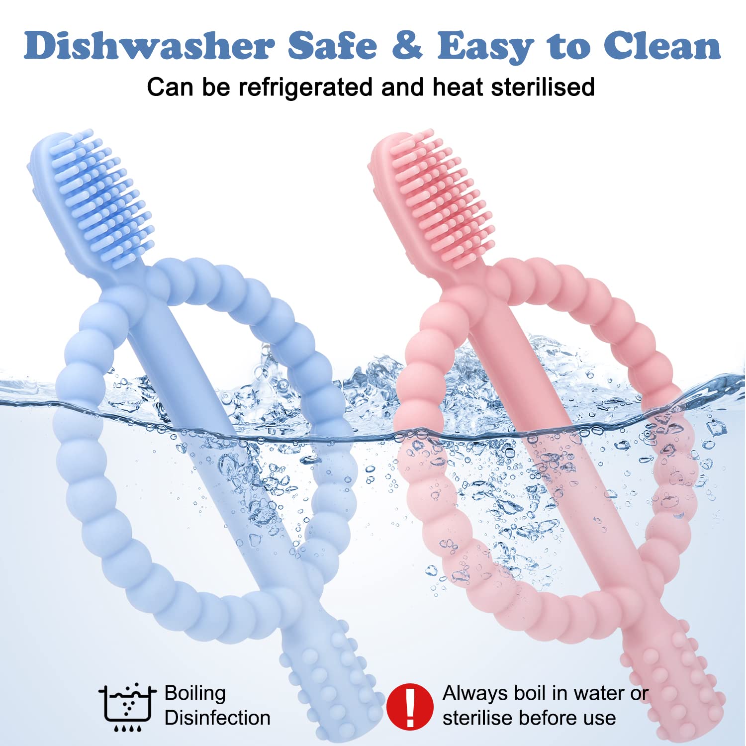 Baby Teething Toys with Easy-Hold Handle, Silicone Infant Toothbrush, Textured On Both Sides Helps Massage, Soothe Sore Gums, Teething Toys for Babies 0-6 Months, 6-12 Months