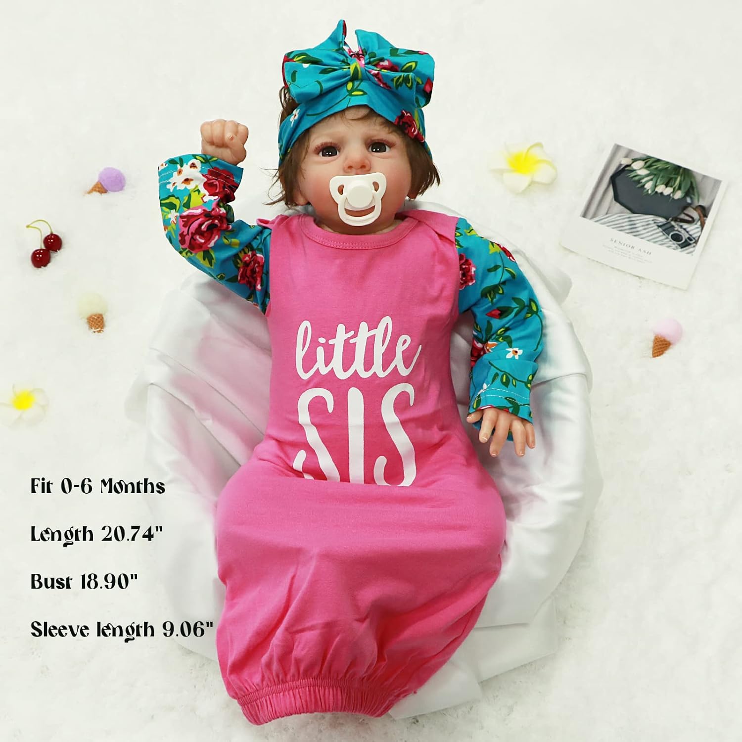 • Cute baby nightgown: "Little Sister" letter print, vintage floral long sleeve design, matching bowknot headband, super fashionable 2pcs baby sleep gown baby pajamas in spring summer fall winter.