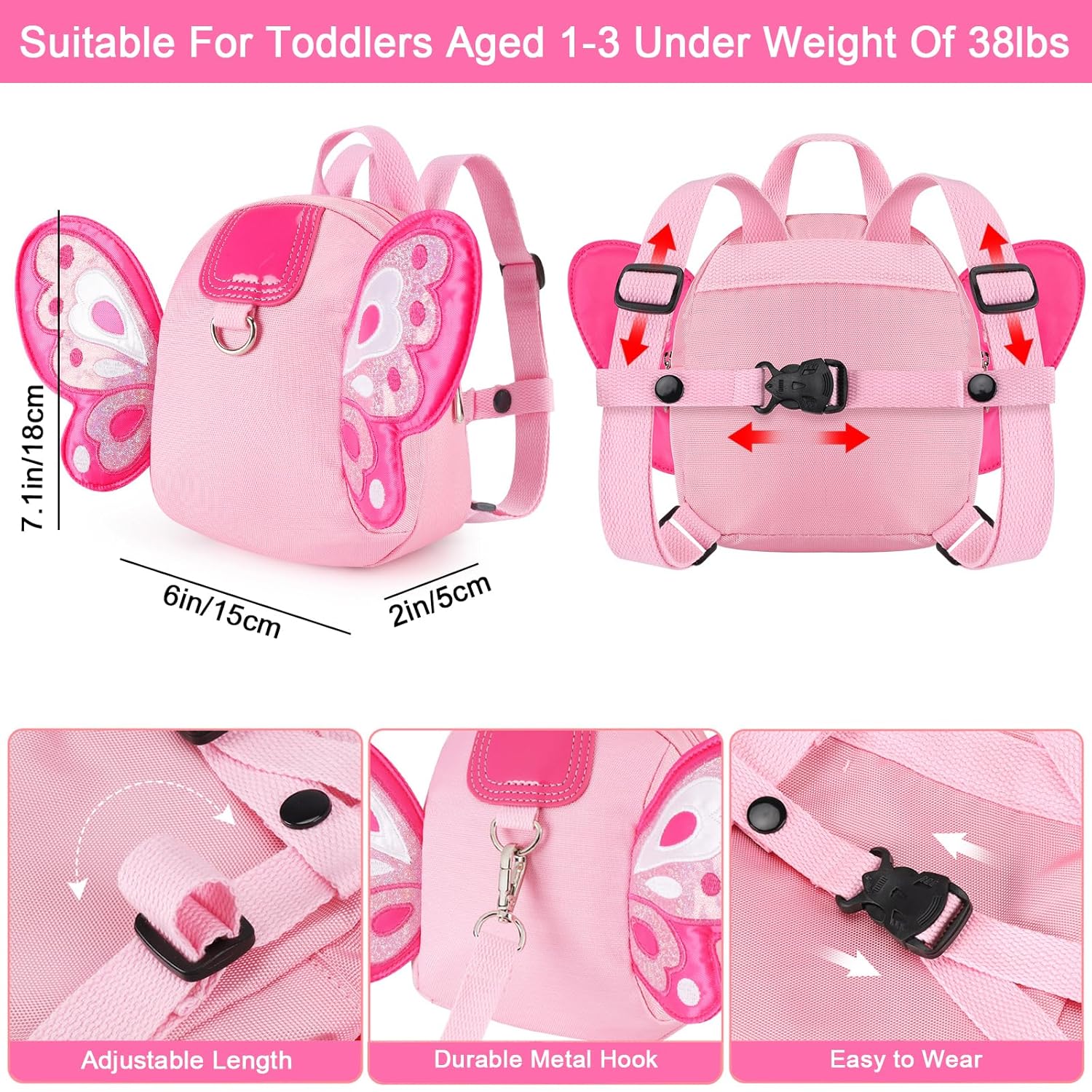 - 4 Ways to Use: ⑴ Child can wear it as a backpack. ⑵Butterfly backpack + leash. ⑶ Butterfly backpack + wrist link. ⑷ anti-lost wrist link. With this backpack with wrist leash, you don’t have to worry that your curious kid will wander lost.
