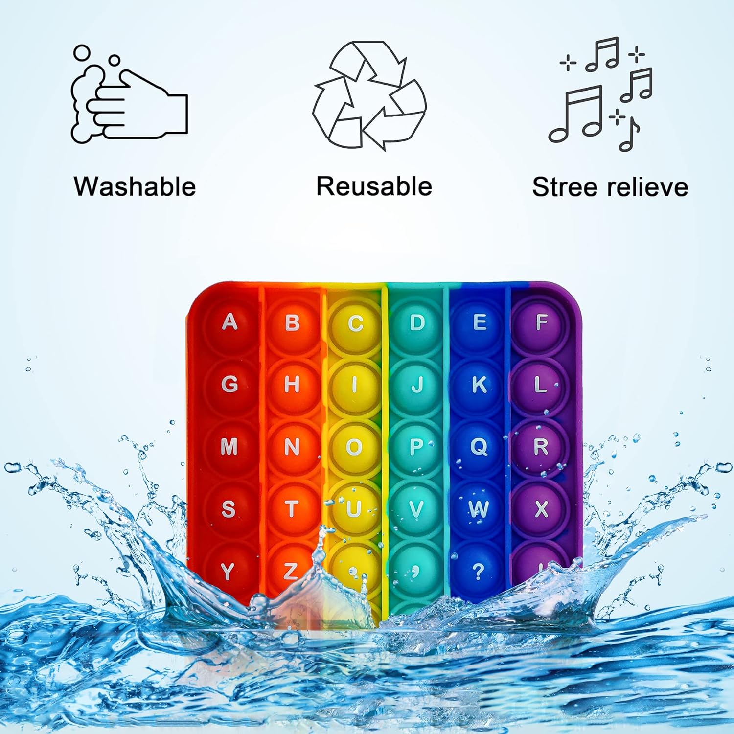 Alphabet Pop Fidget Toy Letters ABC Numbers Learning and Educational Toys Square Sensory Toys Popper Games Stress Relief Gifts for Kids 2 Packs Single Side(Uppercase and Lowercase Letters)