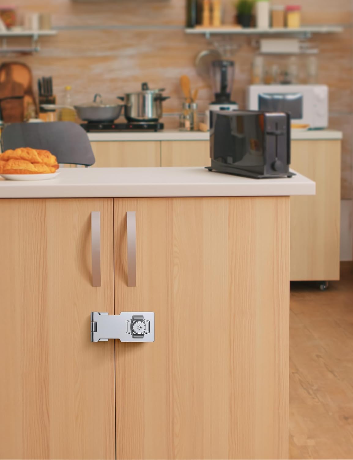 - 【Rust-proof Keyed Hasp Locks】: Thease hasp lock make with Zinc Alloy and Brushed Chrome Plating, can be used indoor and outdoor long time.