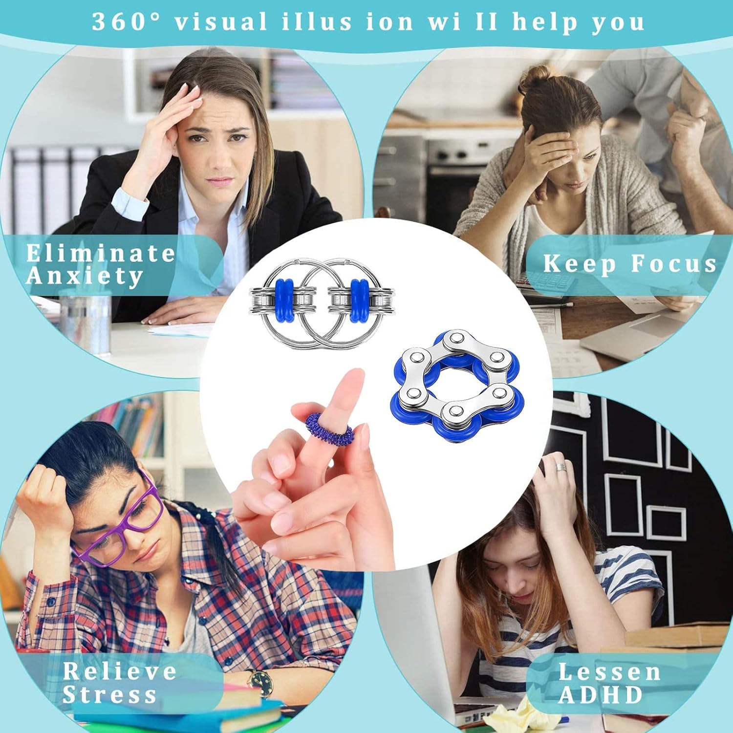 8 Pcs Sensory Fidget Toys Pack Flippy Roller Bike Chain Fidget Spinner Anxiety and Stress Relief Silent Tools Mesh Marble Acupressure Ring for Adults Teens Kids Boys Girls