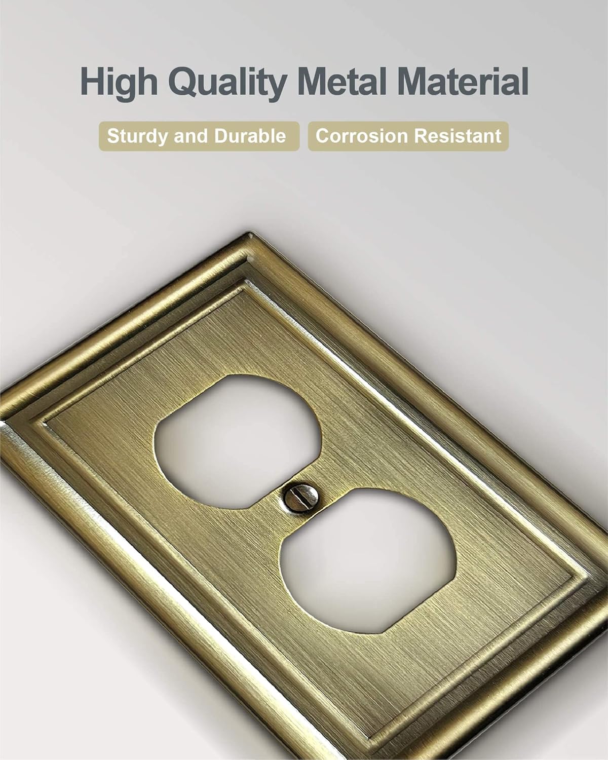 4-Pack Duplex Wall Plate, Decorative Antique Brass Outlet Covers, Metal Electrical Outlet Cover Plates, 1-Gang, Midsize