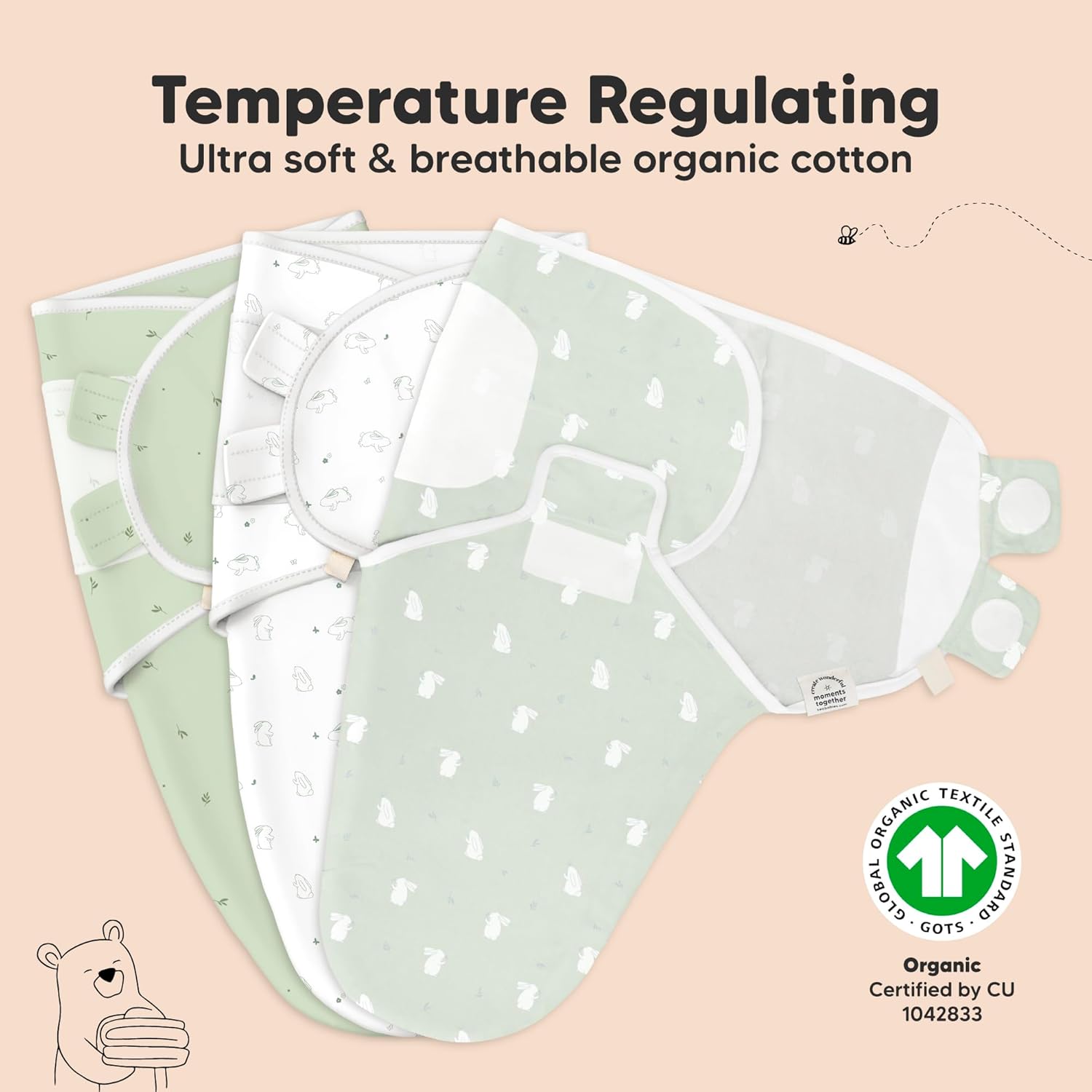 3-Pack Organic Baby Swaddle Sleep Sacks - Swaddles for Newborns, Infant 0-3 Months, Baby Girls, Boys, Soft & Snug Newborn Sleep Sack, Nursery Swaddling Blankets (Bunnies)