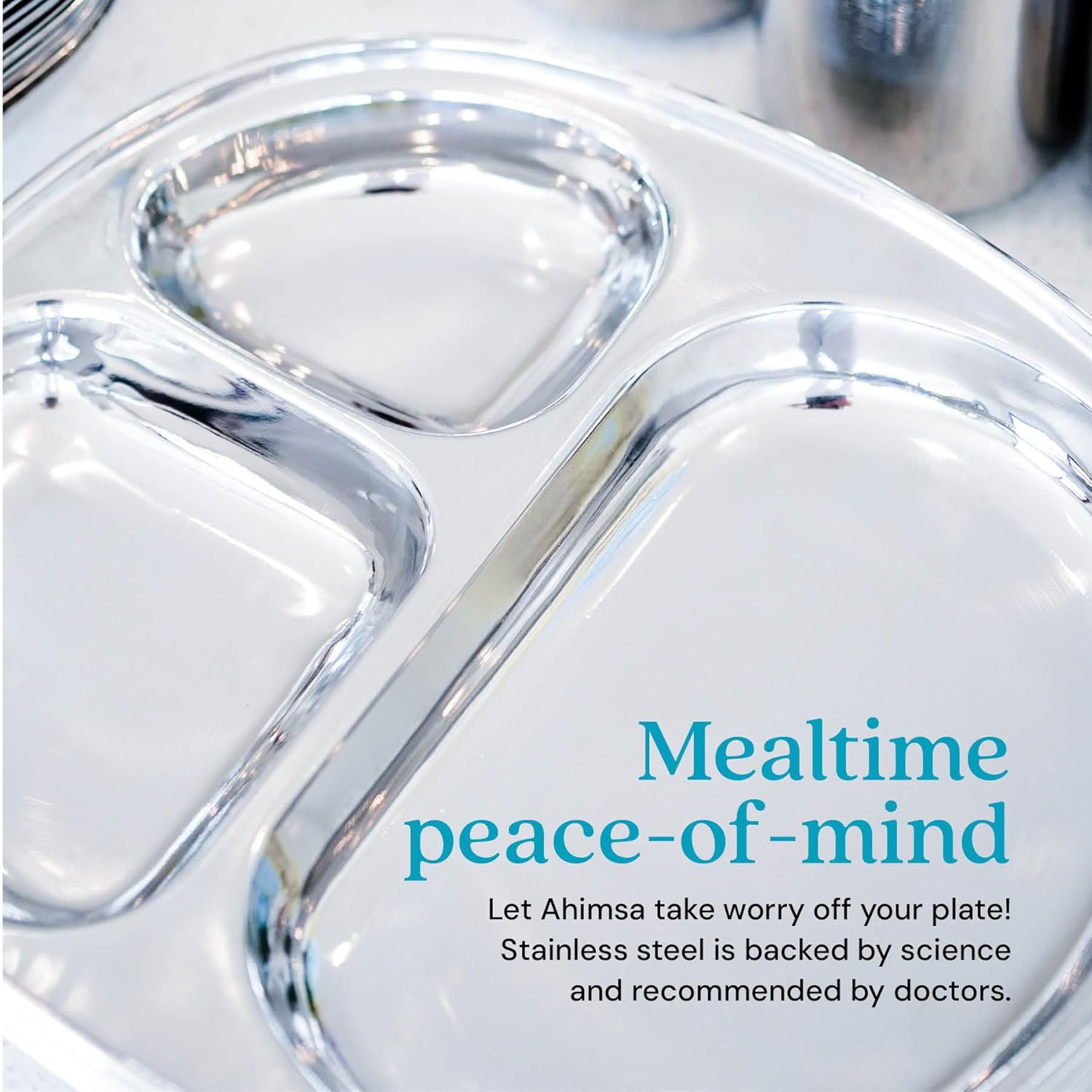 - ๐๐๐๐ข๐๐ญ๐ซ๐ข๐๐ง ๐๐๐ฌ๐ข๐ ๐ง๐๐ ๐ฐ๐ข๐ญ๐ก ๐ ๐จ๐จ๐-๐๐๐๐ ๐๐๐ ๐๐/๐ ๐๐ญ๐๐ข๐ง๐ฅ๐๐ฌ๐ฌ ๐๐ญ๐๐๐ฅ: Ahimsa Balanced Bites stainless steel kids plates are thoughtfully designed for kidsโ health and safety. Our toddler plates with dividers are crafted from high-quality food-safe 304 18/8 stainless steel to prevent chemical transfer and eliminate soapy aftertastes. Our toddler stainless steel plate makes safe eating simple and joyful