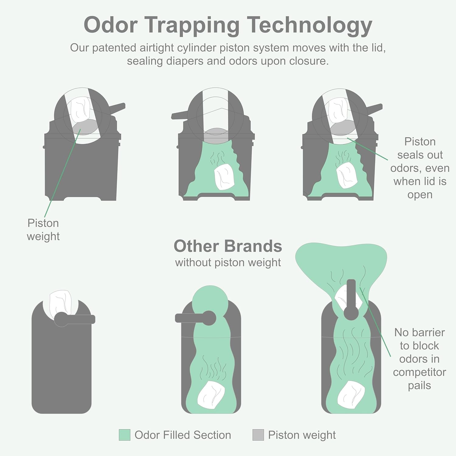 - Odor Lock: Featuring an airtight lid that locks in odors, this diaper pail keeps any home nursery or childcare center smelling clean and fresh, ensuring a pleasant environment for everyone.