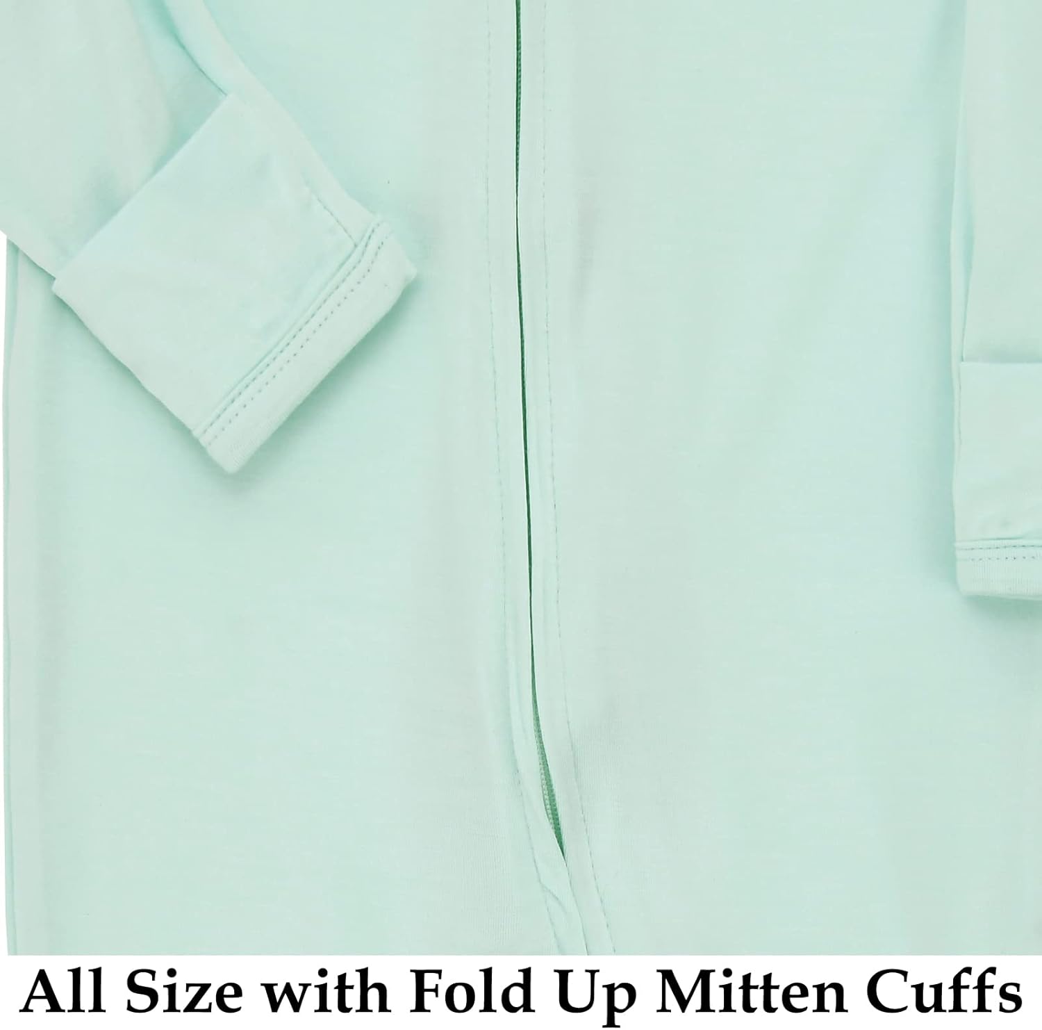 Aablexema Baby Zipper Pajamas Bamboo Rayon, 3pcs Unisex Infant Onesie with Mitten Long Sleeve Footed Pjs