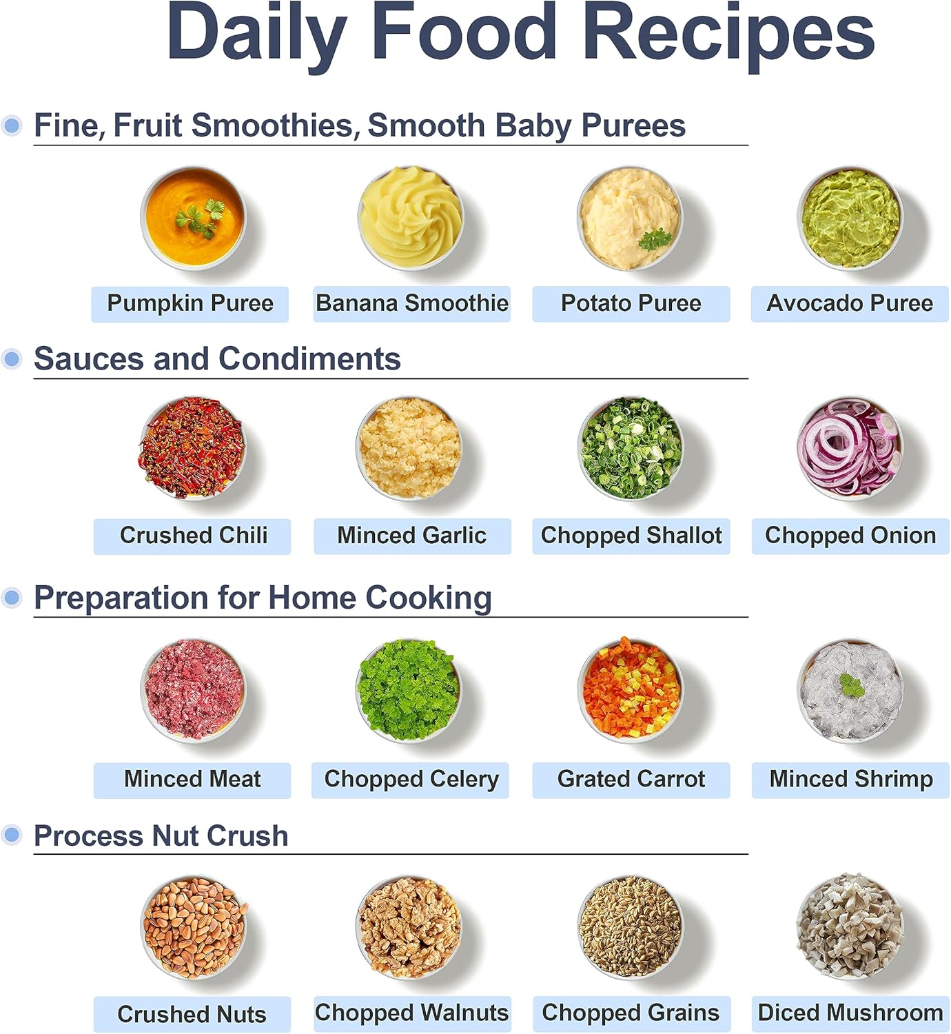 - ăEasy to Use and CleanăWith a simple one-button operation, you can easily use the baby food blender to blend, puree, or chop your baby food. The mixing bowl, blades and lid are completely separated from the body and can be easily disassembled and cleaned. This baby food maker also comes with a recipe book to help new parents get better at using it.