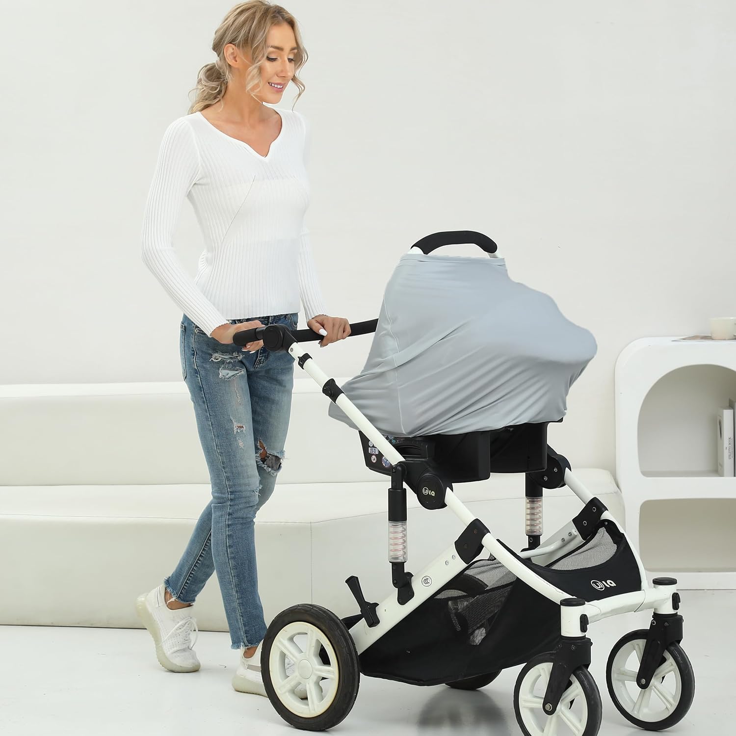 Breathable Car Seat Cover for Babies – Multi-Purpose Soft Rayon Nursing Cover for Breastfeeding, High Stretchy Infant Carseat Canopy, Stroller Cover (Smooth Rayon, Light Grey)