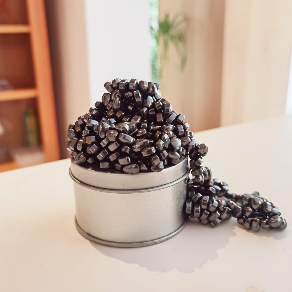 - Enhance Your Desk Decor: Crags are not only incredibly calming and focus-boosting, but they also elevate the aesthetic of your office desk. You'll adore the striking contrast between the matte white tin and the lustrous black ferrite beads. When you desire a clean and sleek look, keep the stones contained in the tin. And when you want to garner attention and evoke envy, mold your Crags into the most impressive shapes, displaying them proudly as your co-workers marvel.