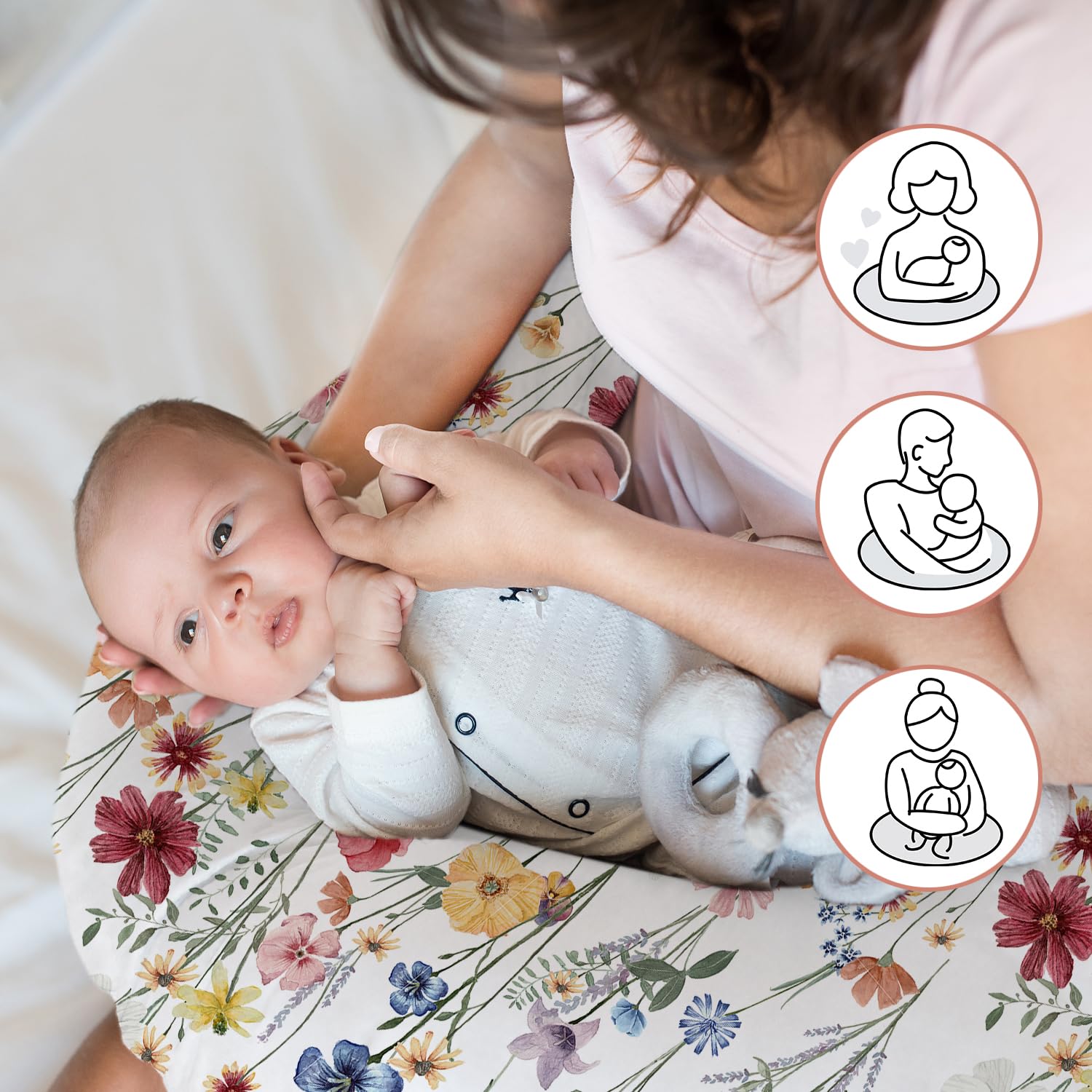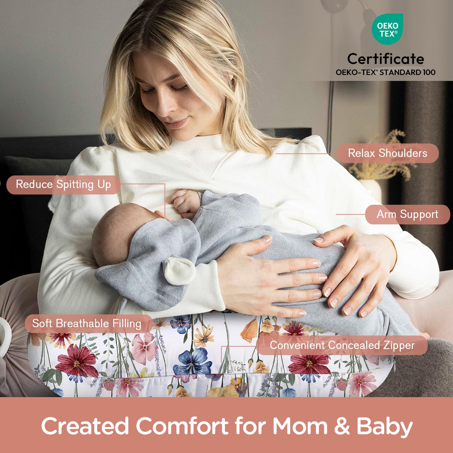 Little Grape Land Nursing Pillow for Infants, Breastfeeding Pillows, Baby Support Pillow for Nursing, Bottle Feeding, Tummy Time with Machine Washable Cover & Breathable Filling (Spring Flower)