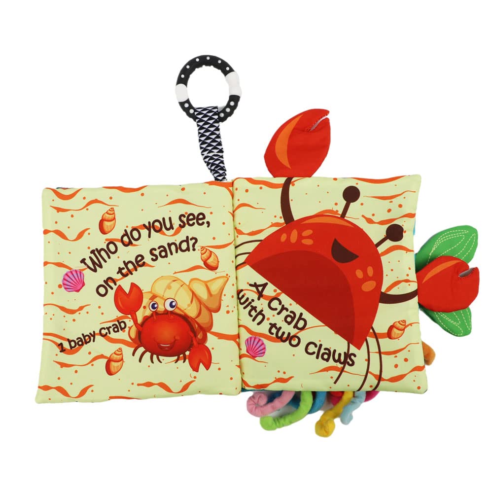 - Baby Books 0-6 Months, Interactive Activity Fish Book: Be a child once again! Lift-the-flap,play peek-a-boo, Search for hidden surprises in the crinkle books,Touch and feel textures,gaining self-awareness & discovery through baby mirror toy & enjoy crinkle pages! This baby toys 3-6 months, soft fabric book encourages adventure & discovery of the colorful undersea world.Your baby will be attracted by 3D baby octopus toy,sea animal,baby crab & fishy tails.You can watch her/his little eye’s dance!