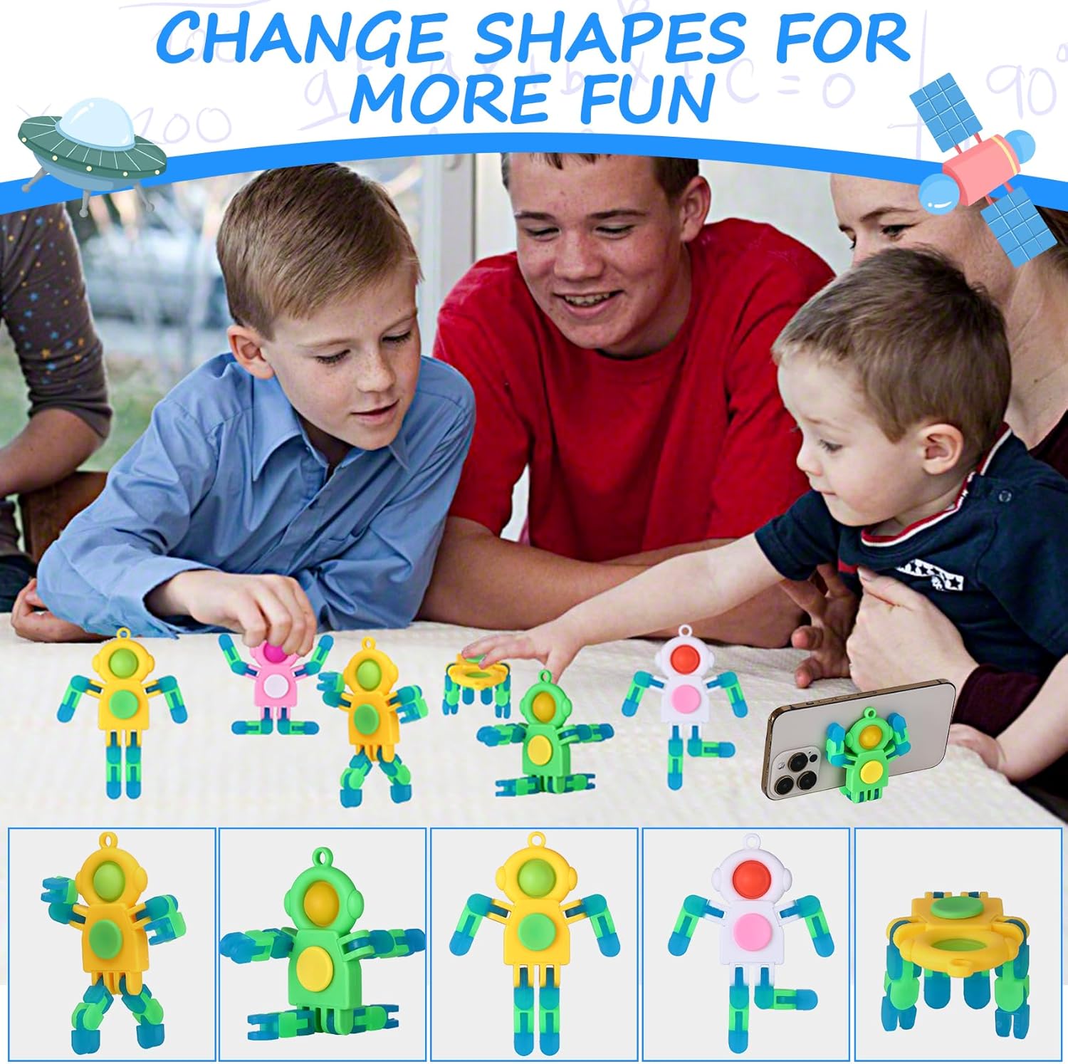 24Pcs Pop Fidget Spinners Bulk - Deformable Astronaut Fidget Spinner Keychain Robot Gyro Fidget Spinner for Kids Adults Glow in The Dark Sensory Toys Christmas Party Favors Classroom Prizes