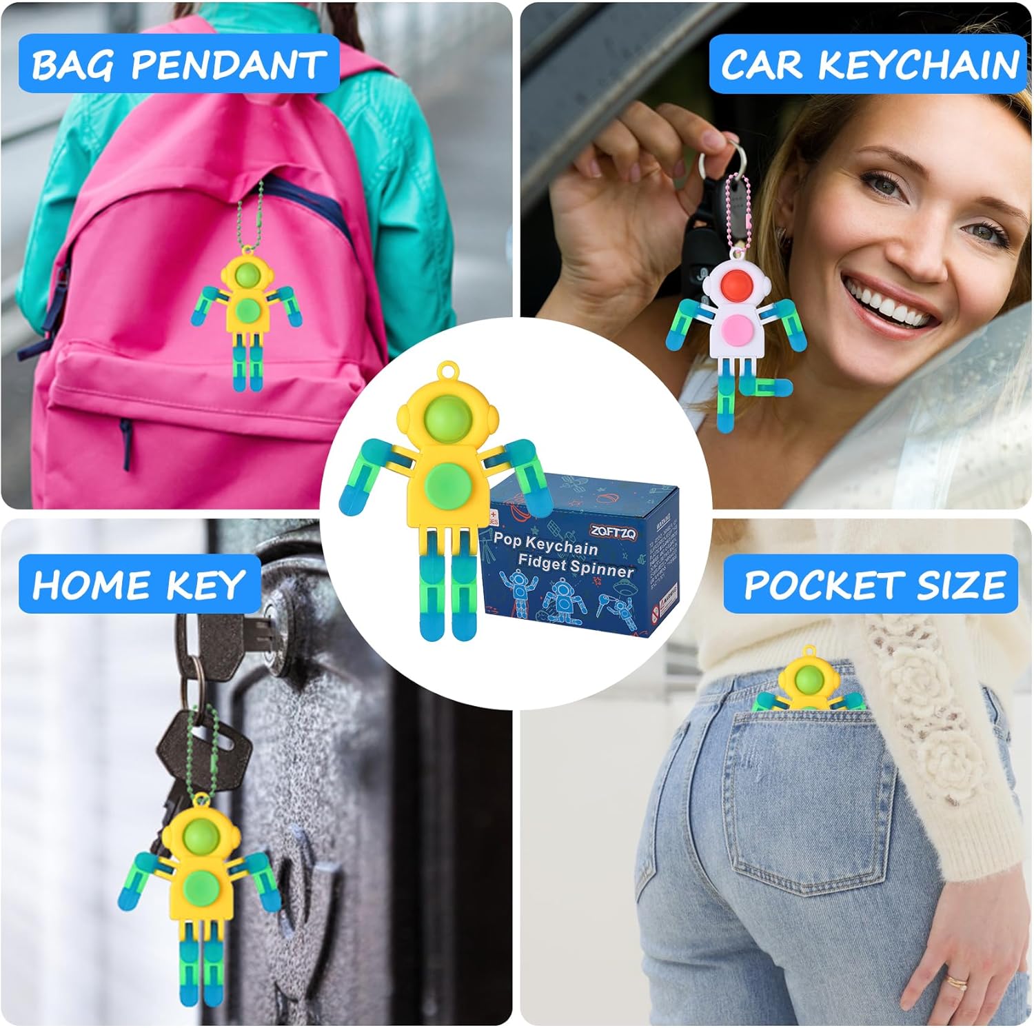 - Fidget Spinner Party Favors:These Robot keychain fidget spinner can be played anywhere,in cars,airplanes,restaurants,camping,and offices,ect.Fidget spinner bulk are suitable for all kinds of holiday toy,including valentine ,easter,mother's day,children's toy,christmas,birthdays,Halloween,etc.