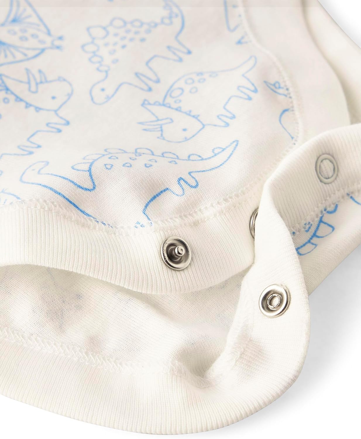 • FEATURES — 100% rib-knit organic cotton exclusive of trims and decorations, button front placket, rib-knit crew neck and leg openings, snap closures at bottom for easy changing, made in Vietnam