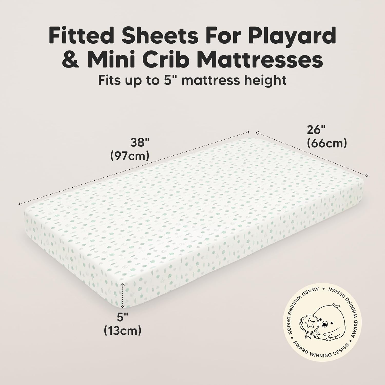 - 2-Pack Mini Crib Sheets - Each KeaBabies Soothe Mini Crib Sheets set comes with two organic mini crib sheets for boys and girls that can perfectly fit the pack and play mattress pads and mini crib mattresses sized at 38” x 26” up to 5” height.