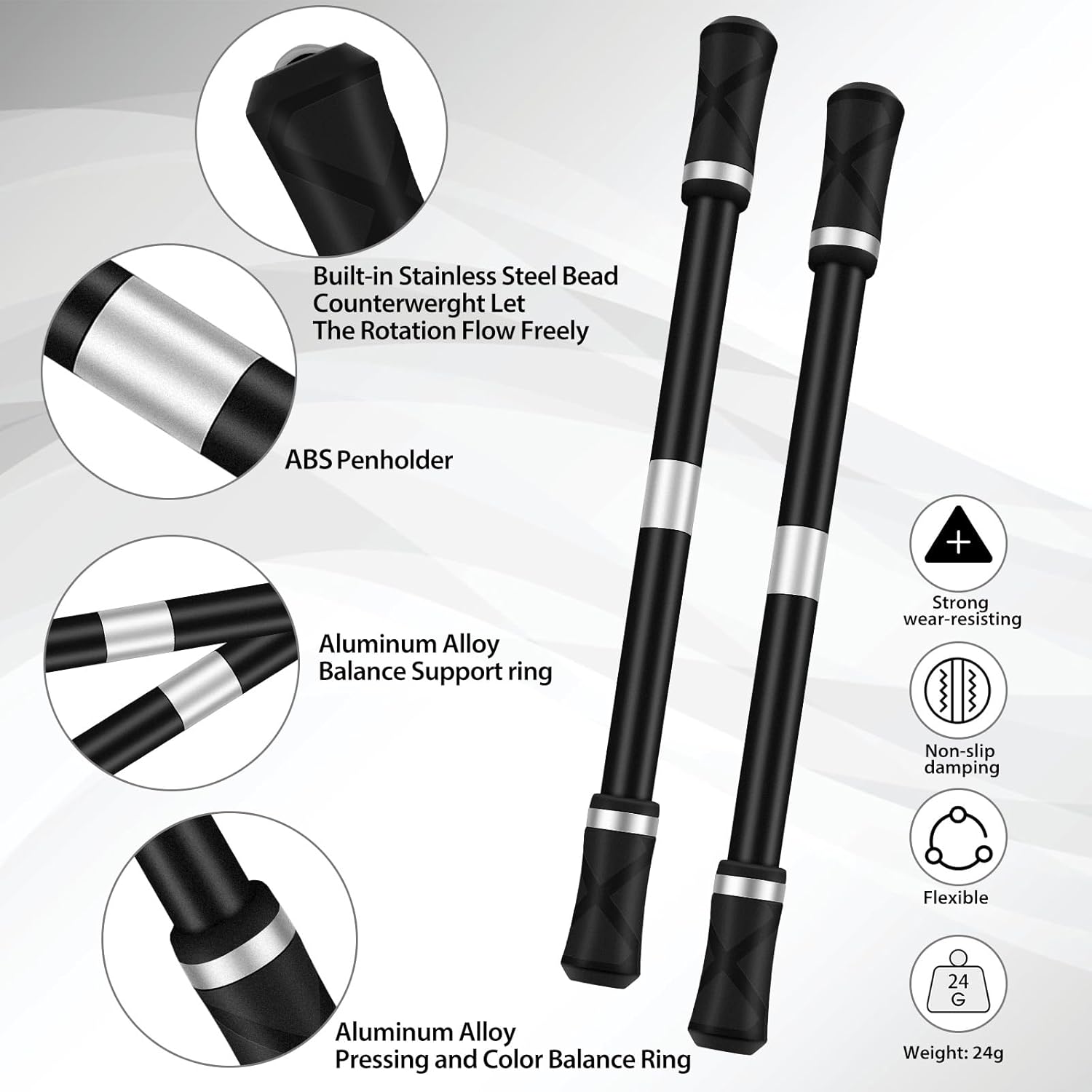 - Sufficient and thoughtful set:You will receive 2 pieces of spinning pens and 1 piece of pen spinning tutorial,Each pen comes with a transparent case,Detachable for easy carry or storage.Put it back in the pen case when you don't need it so it doesn't get dirty.Sufficient quantity and color to meet your different use requirements and replacement requirements.