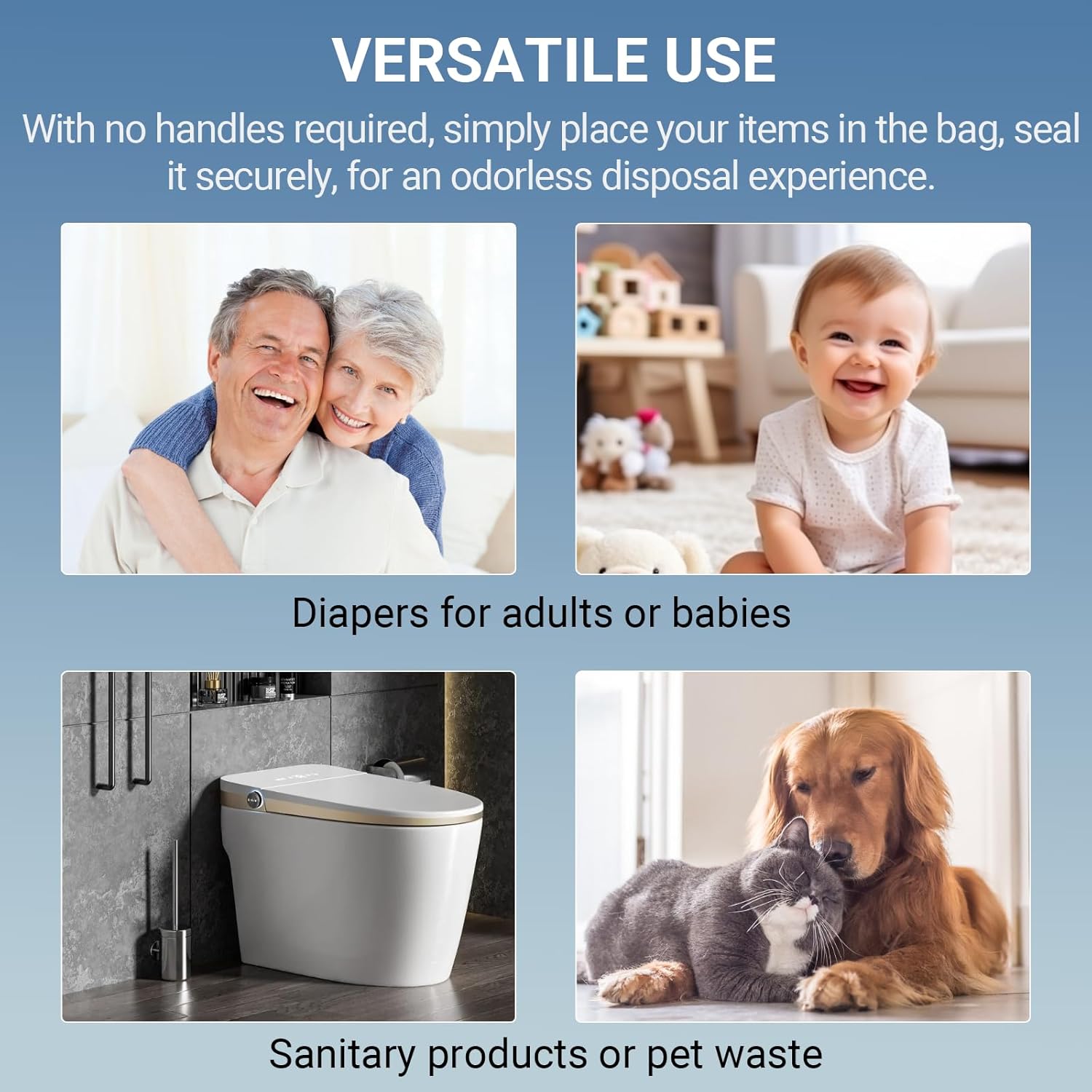- Versatile Use: These disposable bags are perfect for various scenarios and can be used anytime, anywhere. Whether you need to dispose of adult or baby diapers, hygiene products, pet waste, or more, these travel diaper trash bags offer a clean and discreet solution. With no handles required, simply place your items in the bag, seal it securely, for an odorless disposal experience.