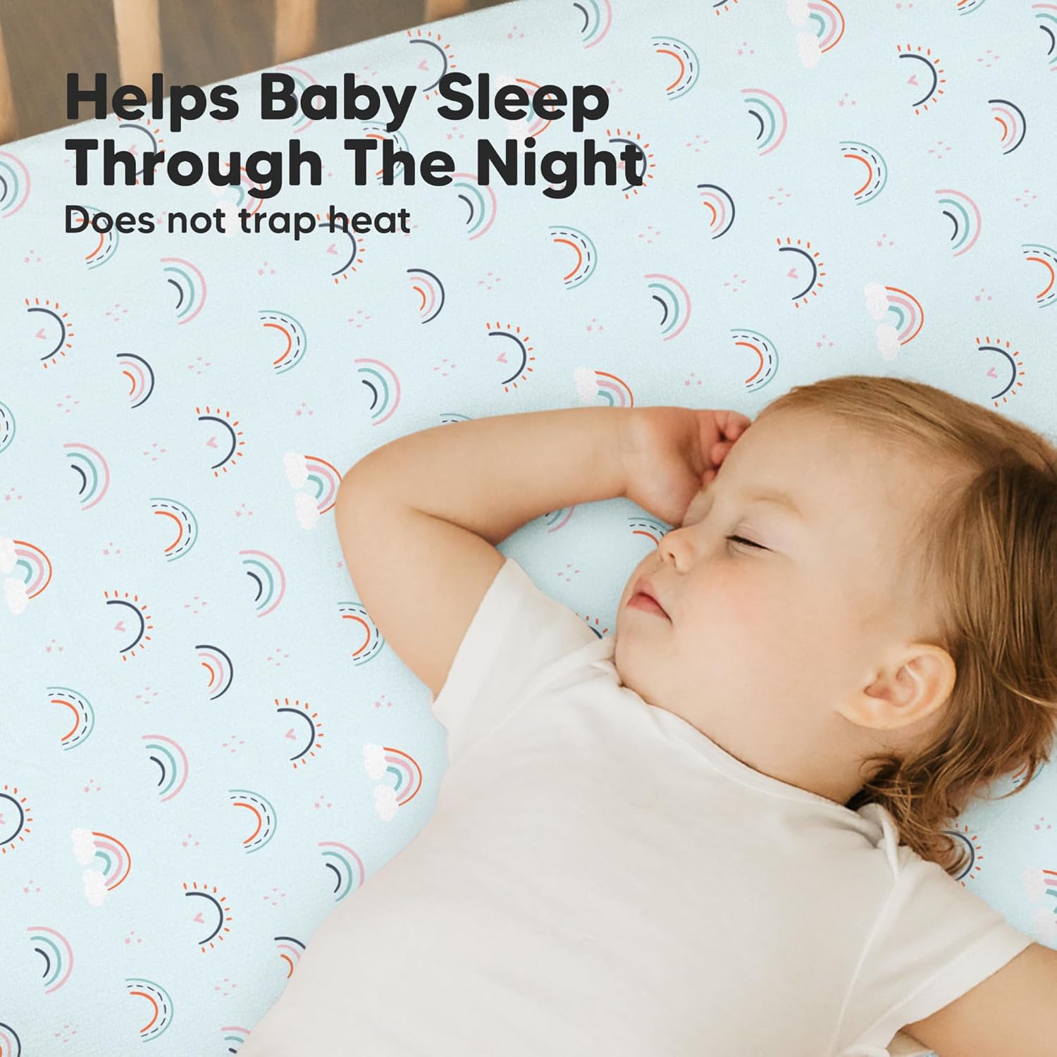 2-Pack Mini Crib Sheets Fitted - 38x26 Pack N Play Sheets for Pack and Play Mattress, Organic Cotton, Soft & Breathable Playard Bedding, Neutral Mini Toddler Bed Cover for Boys, Girls (Jolly Rainbow)