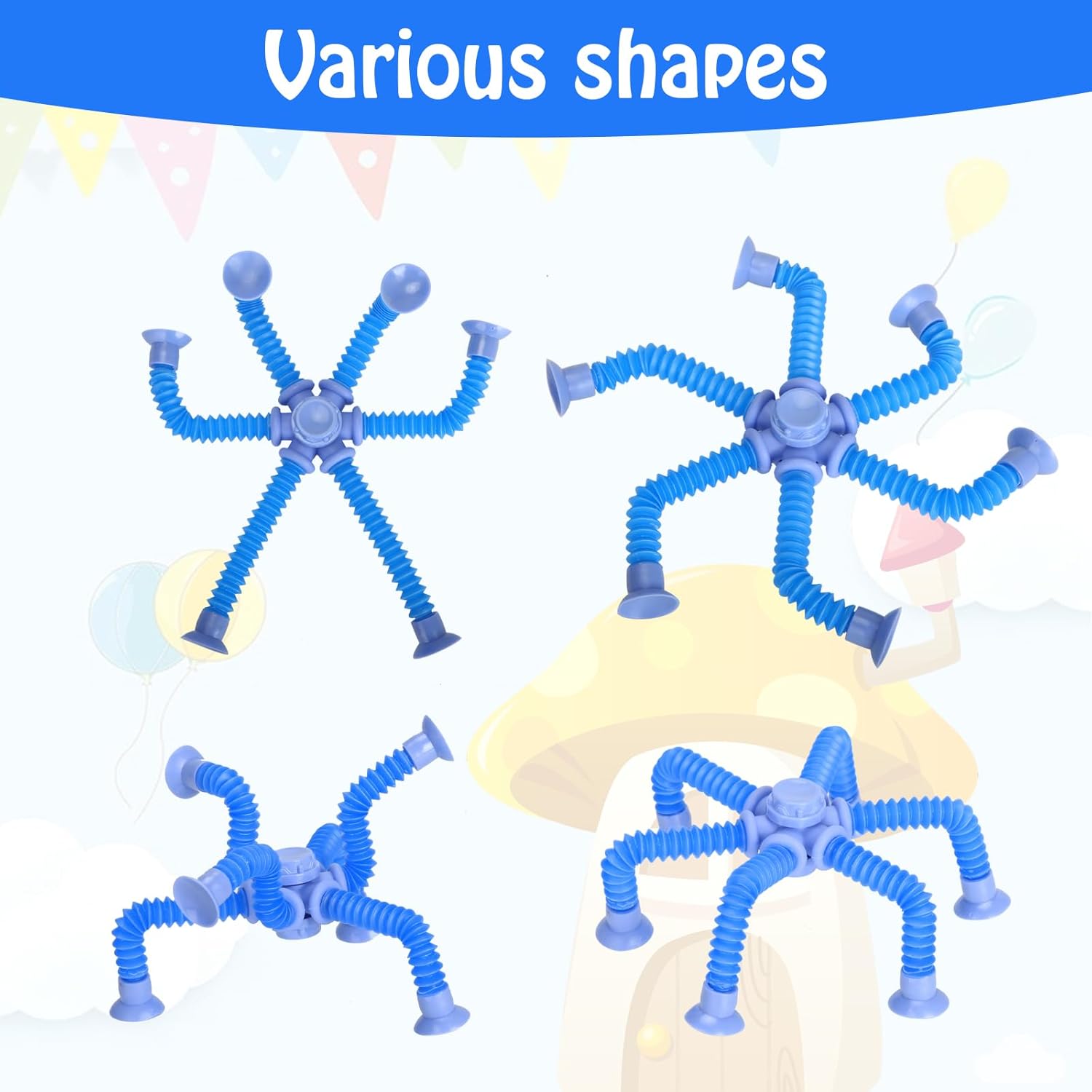 - 【6 Pack Fun Pop Tube Fidget Spinner Toys with Suction Cups】Fidget Spinner pop tubes fidget toys can change various shapes.Every stretch produces a satisfying popping sound, soothing your ears, releasing work pressure from adults, and relieving children's anxiety about learning