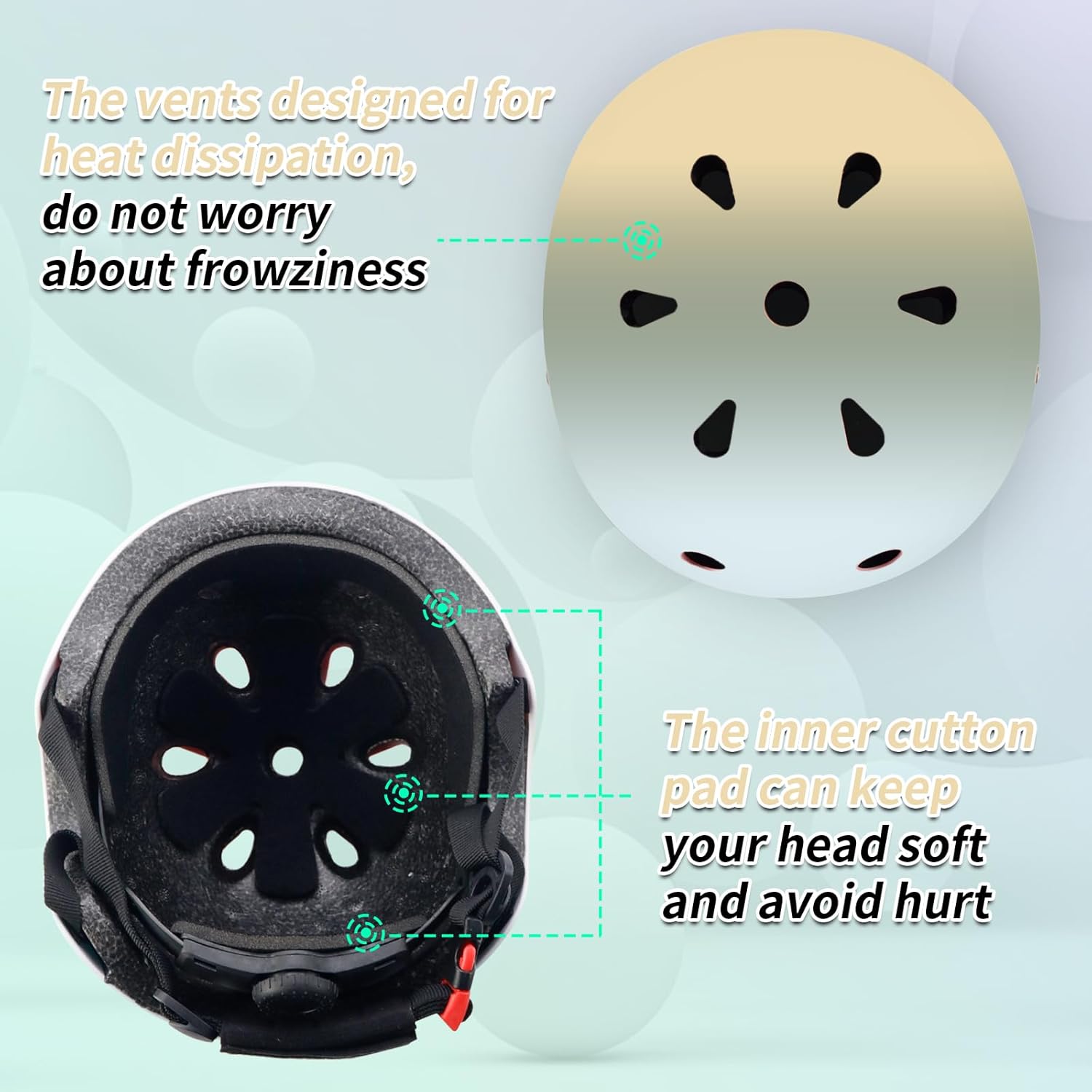 Adjustable Kids Bike Helmet with Knee & Elbow Pads Set, Color Gradient Design for Boys and Girls Aged 3-14+, for Skateboarding, Scooter, Roller & Inline Skating, Longboard
