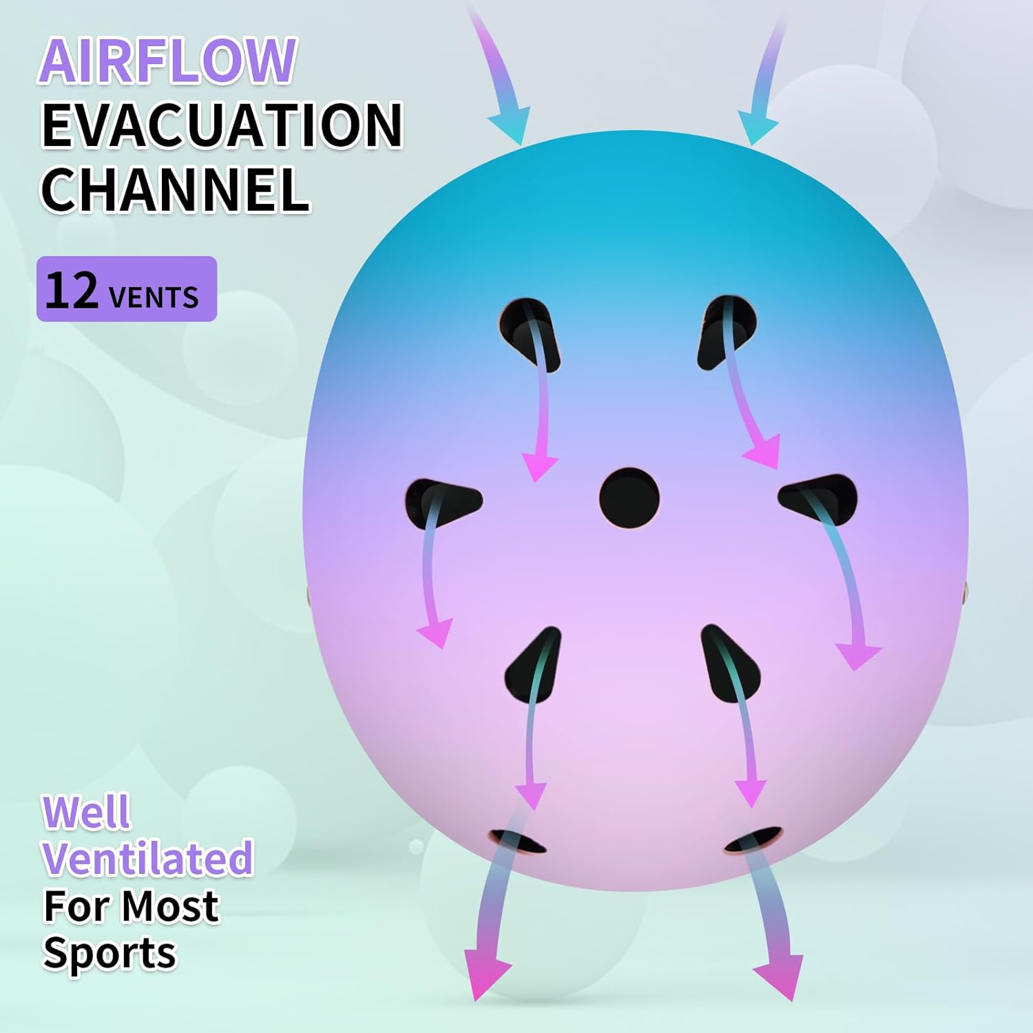 Adjustable Kids Bike Helmet with Knee & Elbow Pads Set, Color Gradient Design for Boys and Girls Aged 3-14+, for Skateboarding, Scooter, Roller & Inline Skating, Longboard