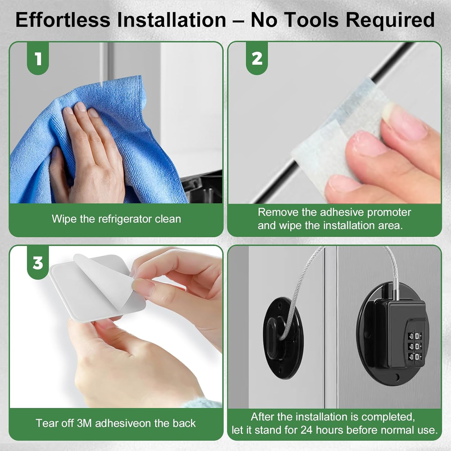 - 【No Drilling Required Fridge Locks for Kids】Our strong non-marking adhesive ensures a secure fit without damaging surfaces. Easily install these baby proof cabinet locks on refrigerators, cabinets, and more—no tools required! When removed, our adhesive leaves no residue or damage on surfaces. Perfect for renters or anyone who wants a temporary yet secure childproofing solution.