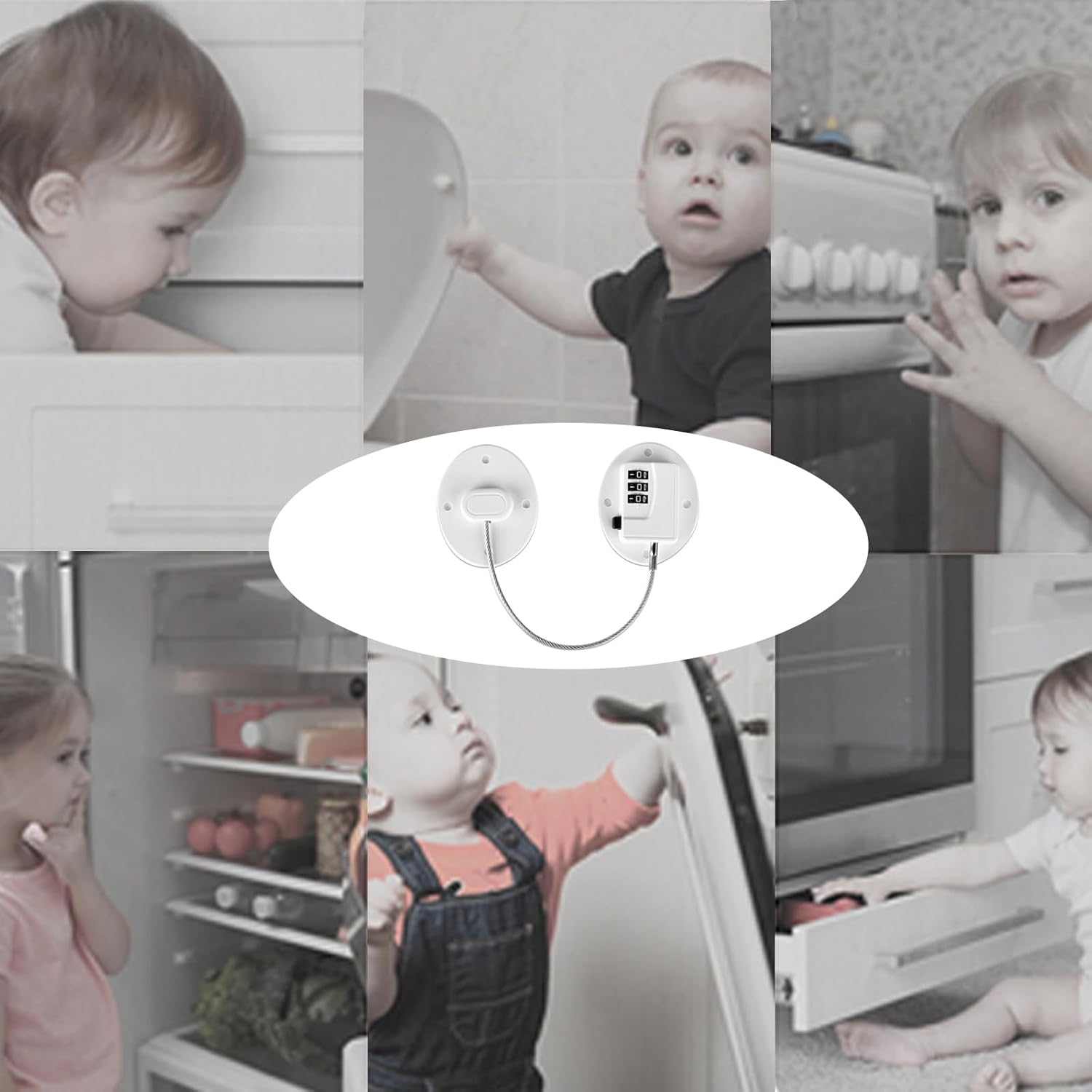 Heavy Duty Combination Refrigerator Lock (2 Pack) - Fridge Lock for Fridge, Cabinets, Drawers, Window and Cabinet Locks Baby Proofing, Strong Non-Marking Adhesive No Drilling (White)