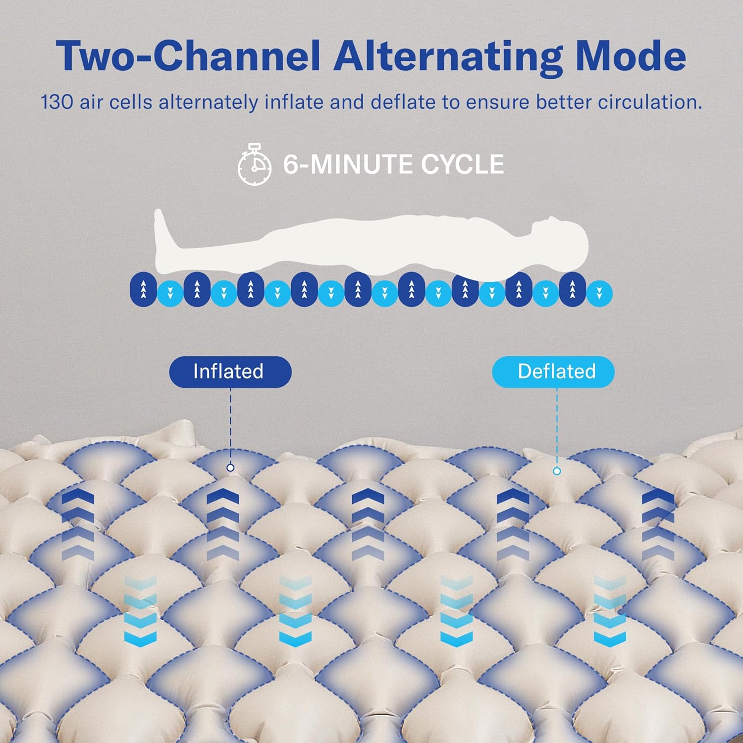 - Effective Bedsore Prevention with Medical-Grade Quality -- With advanced alternating pressure technology, this mattress helps prevent and treat bedsores and ulcers, improves circulation, and relieves pressure on sensitive areas—making it ideal for individuals who are bedridden or have limited mobility. Its breathable and waterproof surface ensures easy cleaning and promotes a clean, healthy environment.