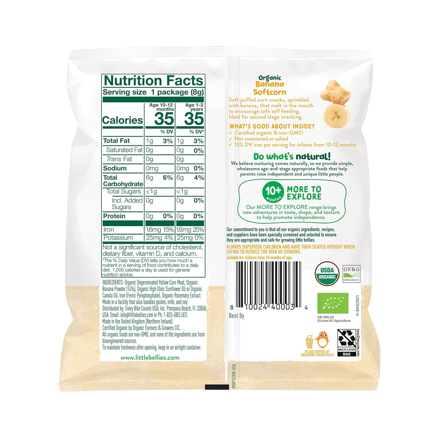 Little Bellies Organic Banana Softcorn Baby Snack (Pack of 18 x 0.28 oz Individual Packs)