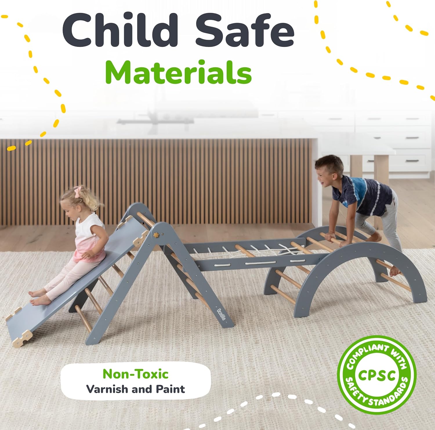 - ENDLESS FUN: Keep little ones entertained for hours by configuring the Pikler, Arch, Slide and Rope Climber in different ways to create their indoor play gym. They can hone their motor and coordination skills and burn off that toddler energy.