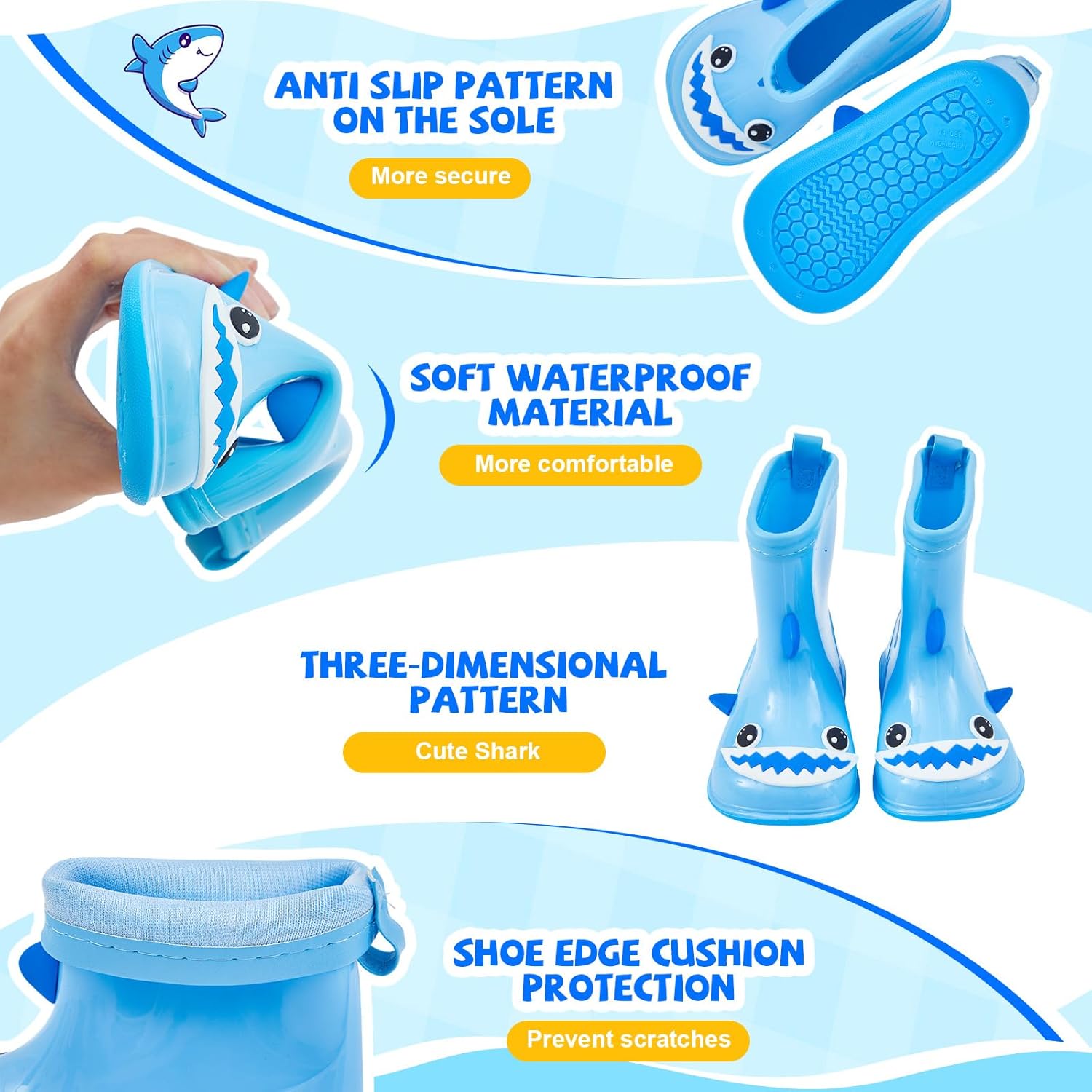 • Complete Set for Kids: the package includes 1 piece of shark raincoat and 1 pair of kids blue rain boots; This set provides complete accessories for your child during the rainy season, making it an ideal choice for parents who want quality rain wear for their toddlers