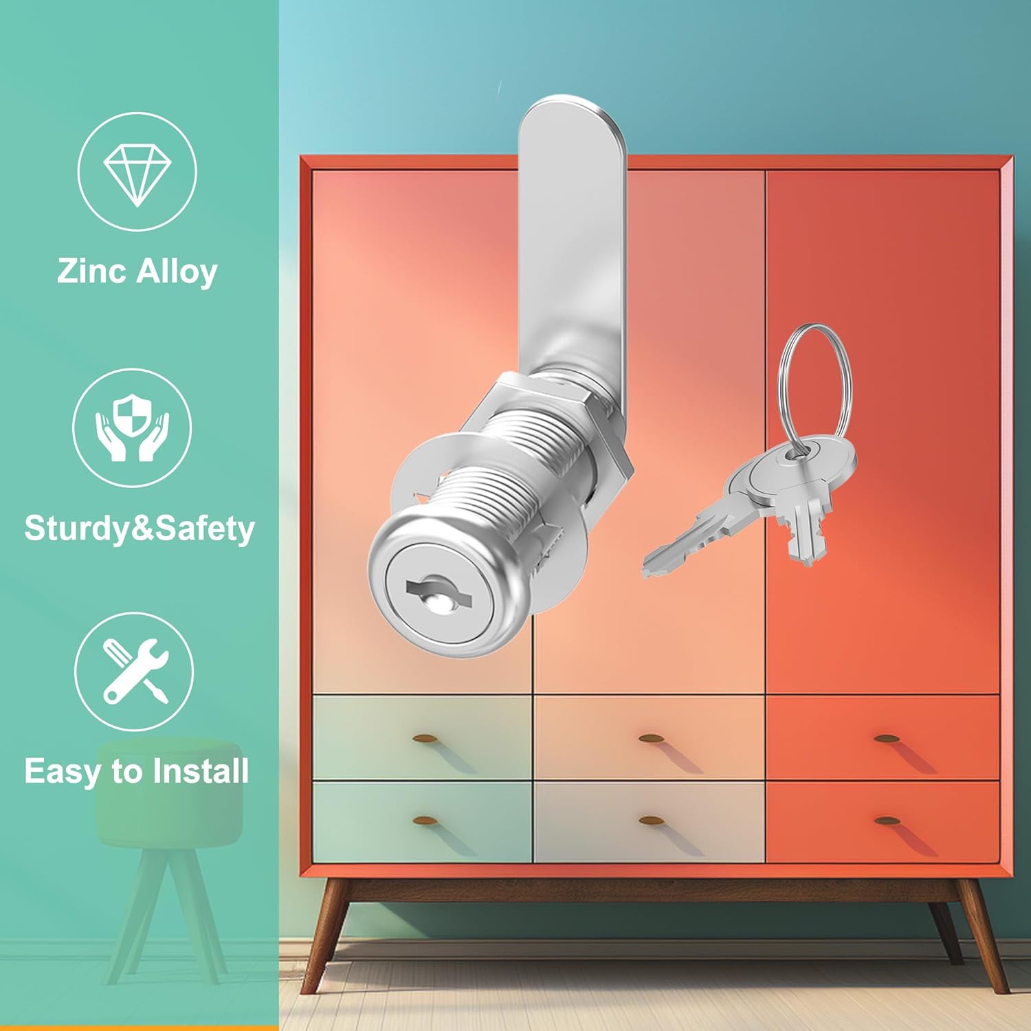 - ★QUALITY METAL MATERIAL: The Cylinder cam locks are made of upgraded waterproof and rustproof zinc alloy, precision casting and chrome-plated surface treatment to ensure long-time use of strong durability and corrosion resistance, cabinet locks with keys are a reliable choice for your home security.