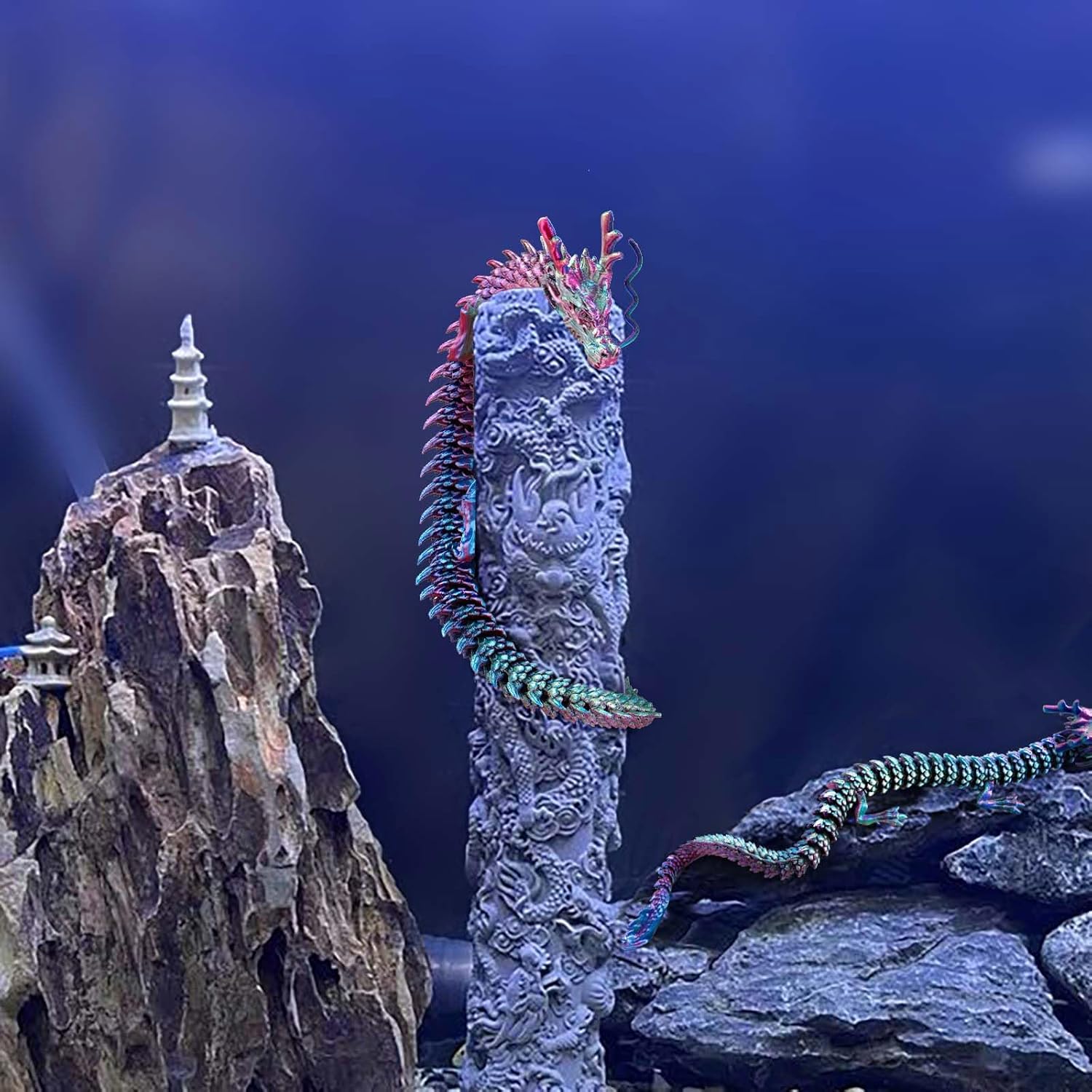 3D Printed Dragon, 17.7 Inch Articulated Dragon, Crystal Dragon, Dragon Fidget Toy, Home Office Decor Executive Desk Toys (BUGN)