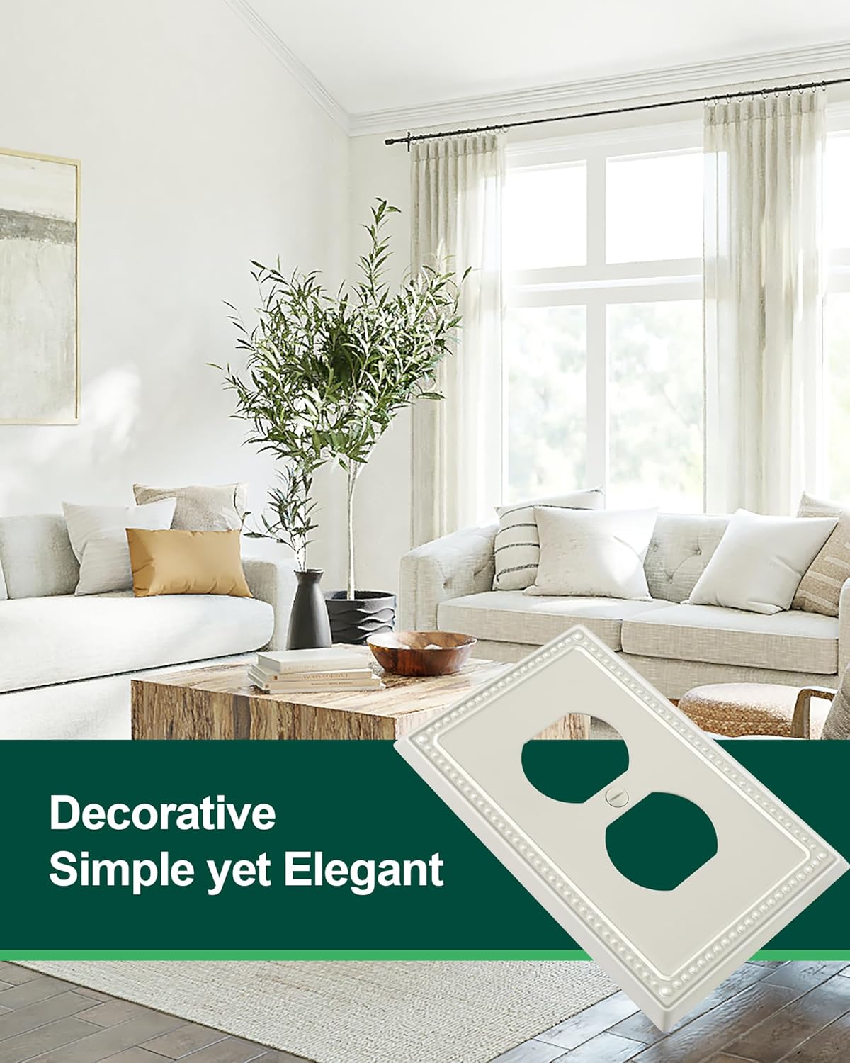 6-Pack Duplex Outlet Cover Plate, Light Almond Metal Wall Plates for Electrical Outlets, 1 Gang Receptacle Light Switch Cover, Pearls Decorative Switch Plates and Outlet Covers