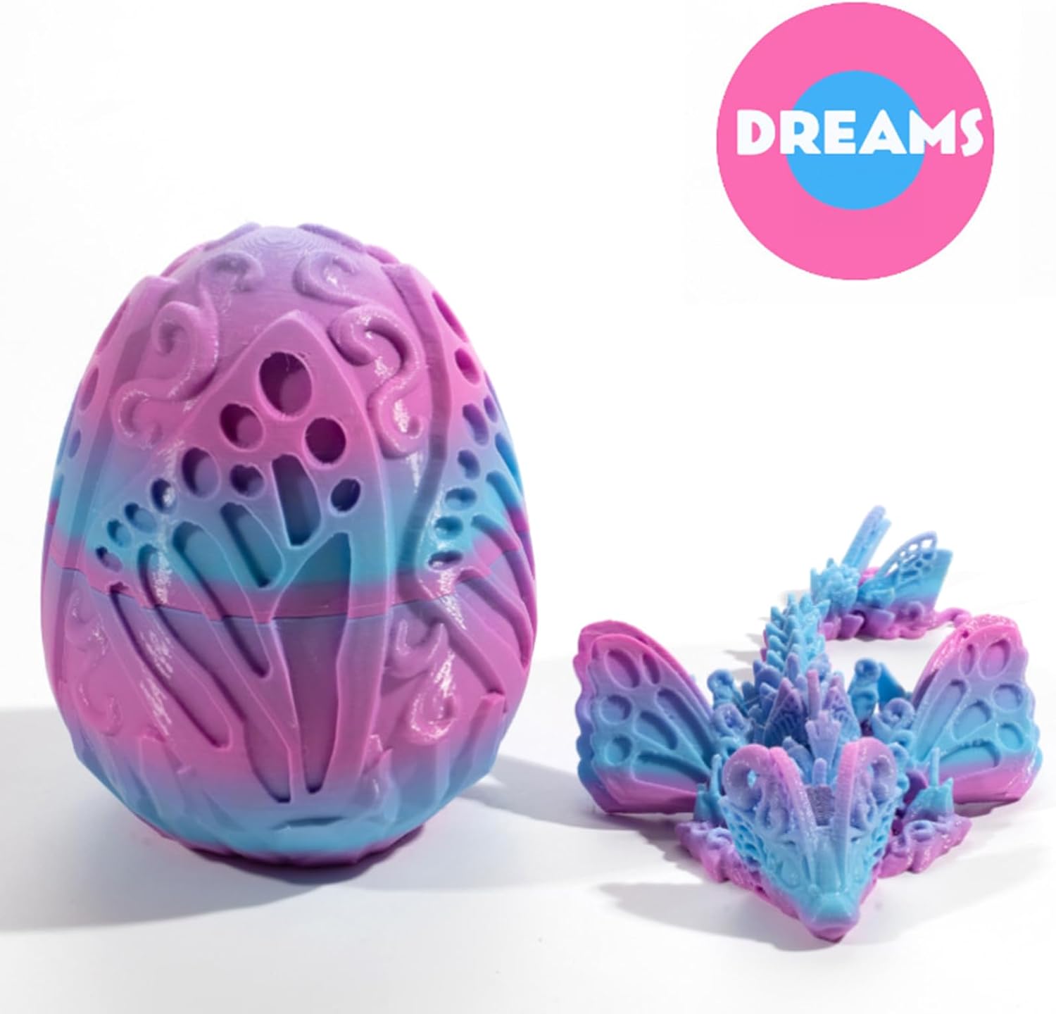 3D Printed Dragon Egg with Dragon Inside, Fully Articulated Butterfly Dragon in Egg, Dragon Fidget Toy, Home/Office/Desktop Décor, Easter Basket Stuffers, Gift for her (Dreams)