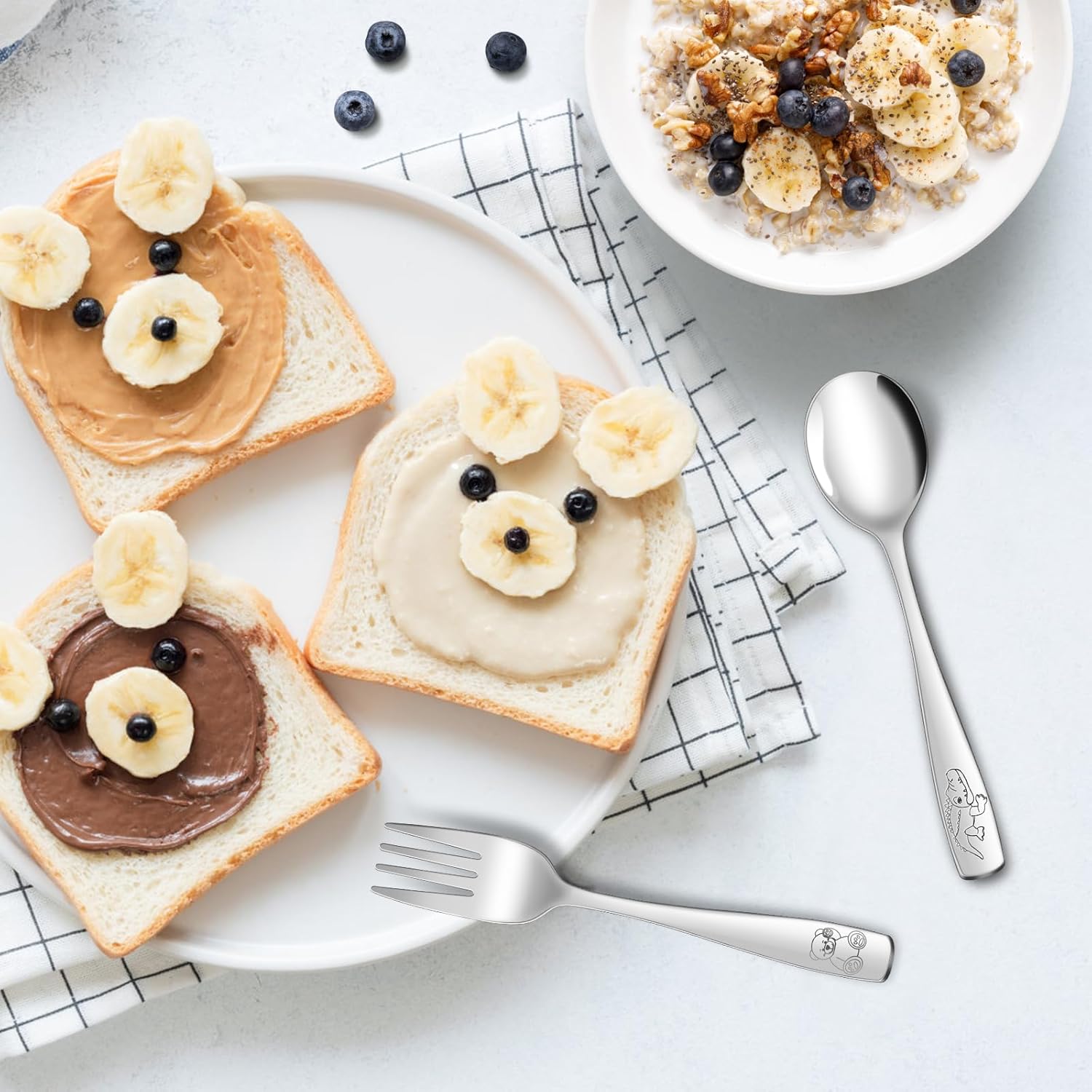 - PREMIUM STAINLESS STEEL KIDS HARDWARE: Great silver wear for kids, and great size for younger children and good quality. Made of high quality stainless steel that is completely safe and non-toxic for children's food, they will not rust or corrode. You donโt have to worry about kids breaking them as they have other toddler utensils. Dishwasher cleans them fantastically.