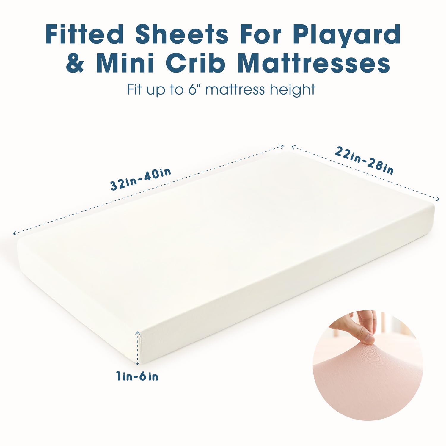- Universal Fit โ Measuring 38" x 24" x 6". Our mini baby crib sheets come with an elastic band all around the sides to securely fit all standard pack n play mattresses. They are very easy to put in place even when you need to change pack n play mattresses sheets in a hurry. Perfect as a baby shower gift or for your own nursery.