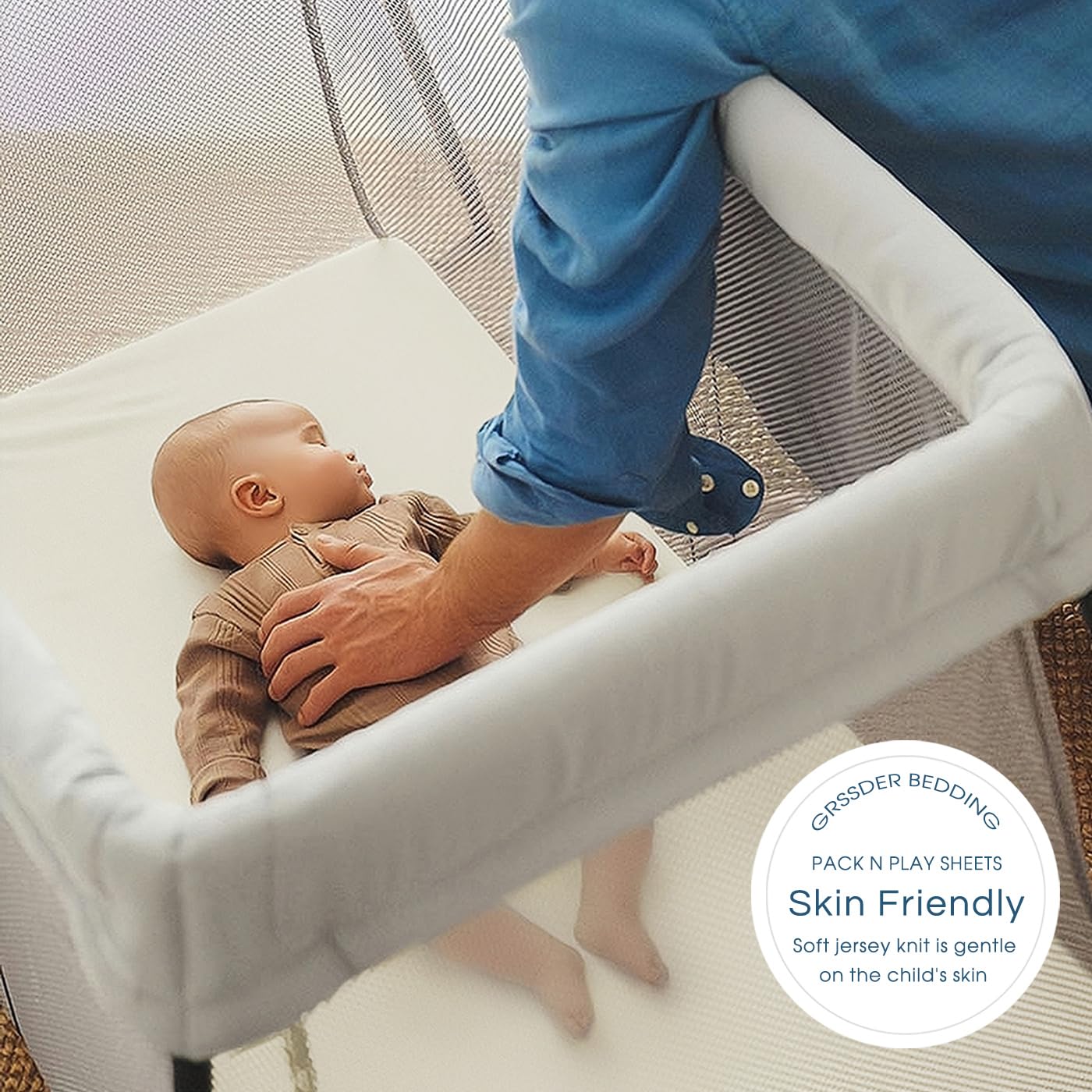 - Ultra Soft & 4-way Stretch: Made of high quality soft stretchy jersey knit fabric. GRSSDER mini crib sheets offer a breathable, sweat-absorbent tee shirt like feel for exceptional comfort, providing your little ones a safe and to stay in place throughout the day.