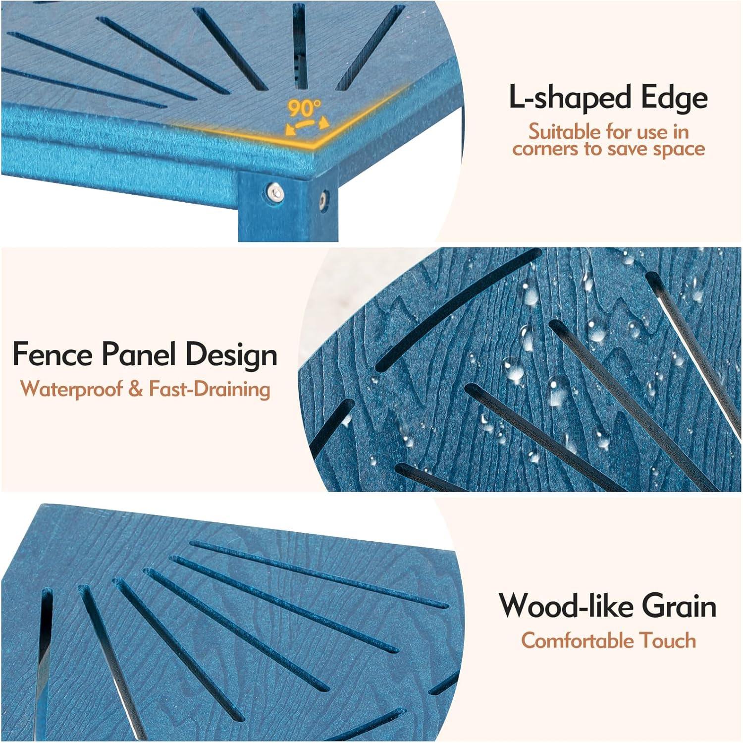 - ăHDPE MaterialăMade of High-density polyethylene (HDPE) and stainless steel hardware, it will not crack, scratch, rust, or fade over time. The triangular structure and the thickened legs ensure the stability of the corner shower bench. In addition, the surface is designed with faux wood grain, making it sturdy and durable while maintaining a vintage and elegant aesthetic.