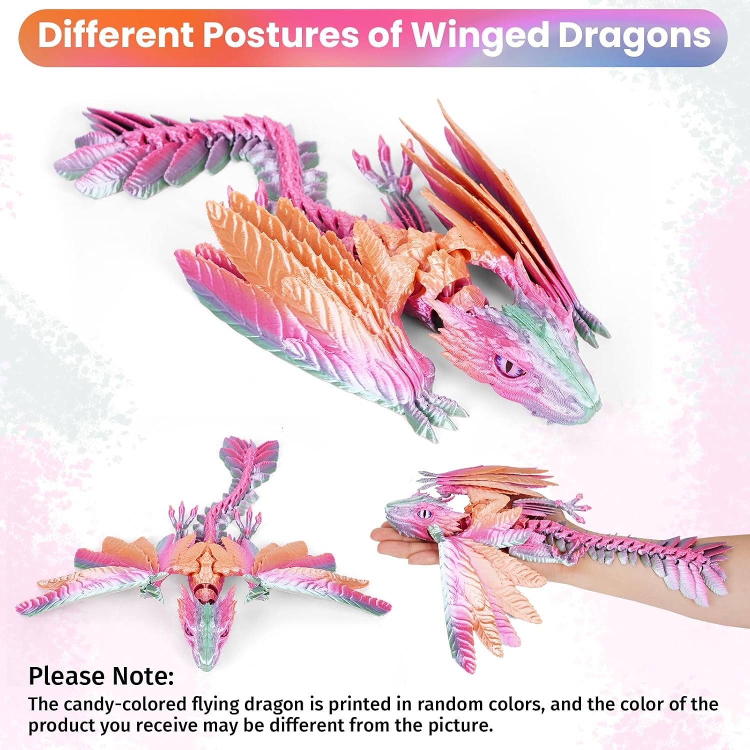 - 🏆【Exquisite Design】: This 3D printed animal is a winged dragon with exquisite design and details that make it come alive. Its adjustable wing hinge design allows it to be posed in a variety of different poses, adding to the fun of play.