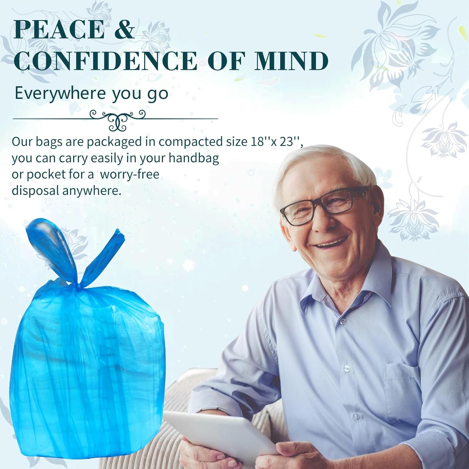 Large Adult Diaper Disposal Bags (18’’x23’’),96 Pcs, Fresh Scented, Elderly Waste Disposal, Baby Diapers Trash Bags, Sanitary Product Disposal at Home and Travel, Blue