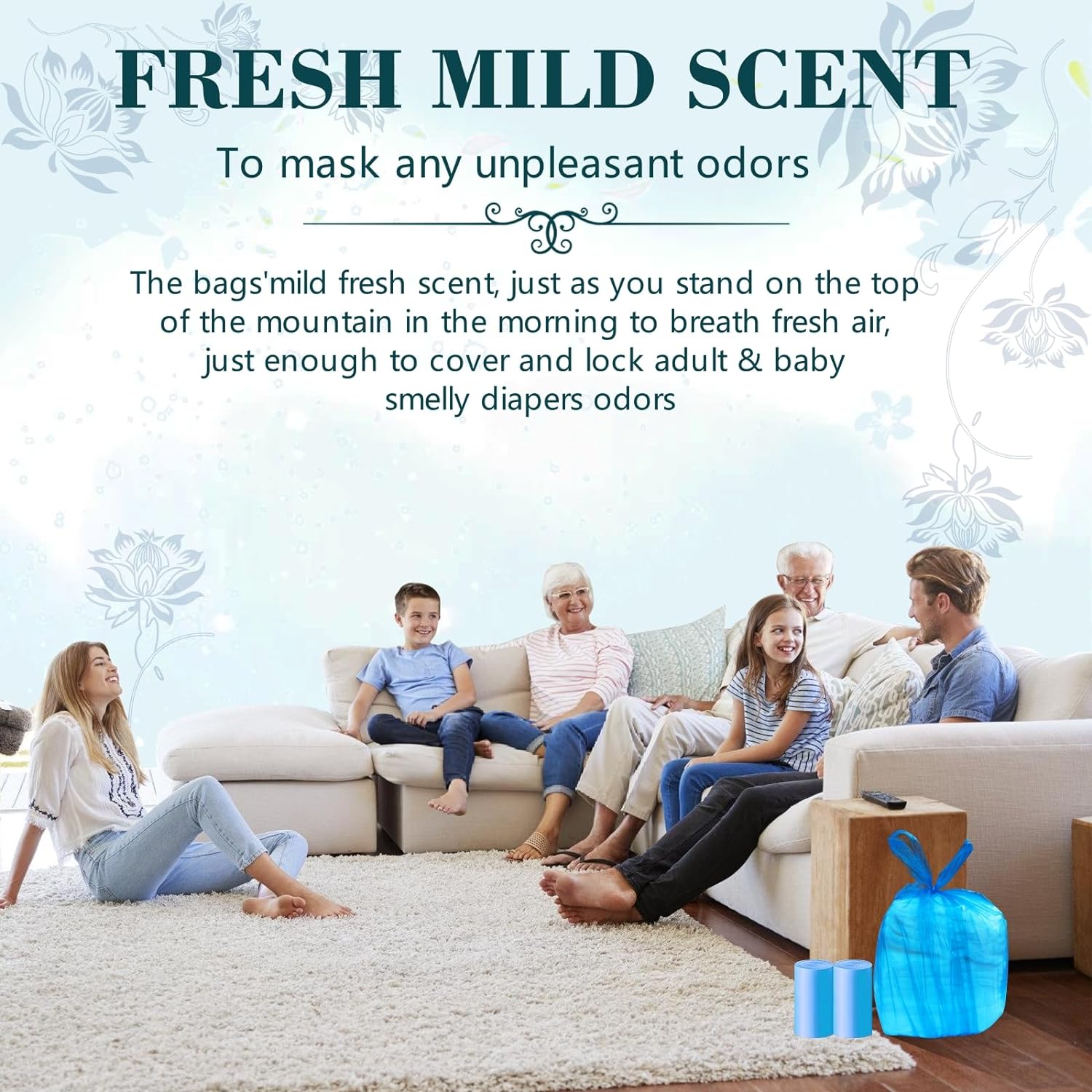 - 【Fresh Scent】: Fresh scented as you stand on the top of the mountain in the morning, just enough to cover and lock adult & baby smelly diapers odors, keep clean,No mess or smell. No longer worried about lingering odors. Help your partner, parent, grandparent, or friend feel more secure when disposing or eliminating waste. This diaper system helps you maintain a clean and comfortable living space. Throw away adult or baby diapers, sanitary pads, and pet waste with confidence and ease
