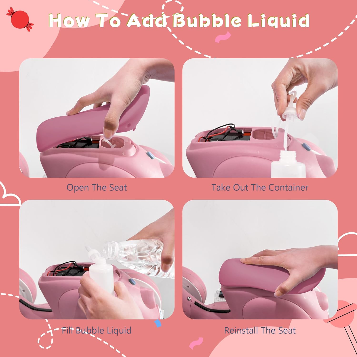 - Comfortable Children Balance Motorbike with Remote & Bubble Machine: Our ride-on toy features a non-slip soft handlebar designed for small hands, while the wider and thicker seat offers excellent shock absorption. With durable EVA wider tires that are noiseless and gentle on wooden floors, and 4 wheels for a smooth ride on various surfaces, it's perfect for both indoor and outdoor activities.