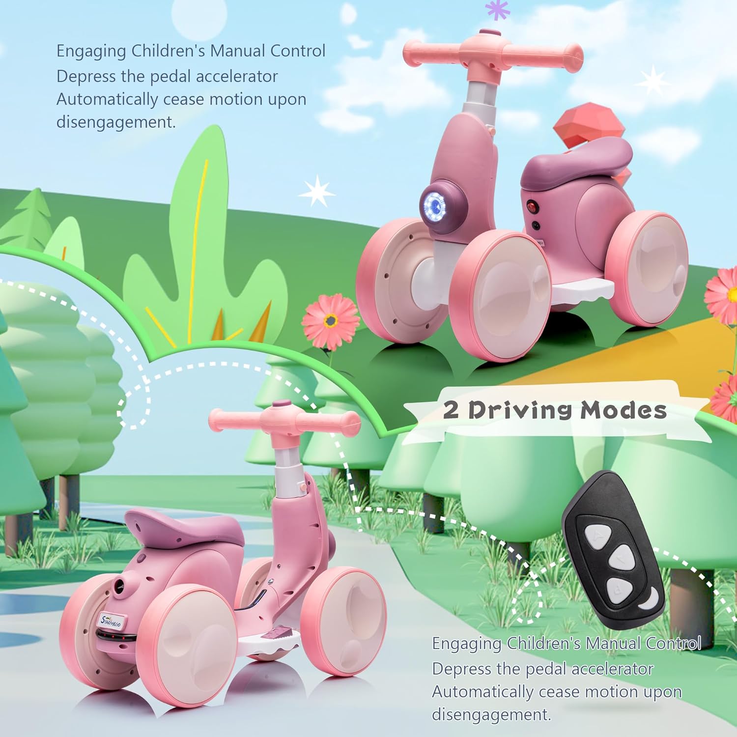 - The Perfect Balance Bike with Bubble Machine for 1-4 Yeas Old Children: Looking for a memorable Birthday / Children's Day gift? This electric balance bike with remote is an ideal choice. Designed for little ones aged 12-48 months, it guarantees a fun-filled and safe riding experience. It offers 2 modes: non-electric propulsion and electric mode, making it a great choice for 1-4 year old boys and girls. Toys for happy childhood growth with this baby ride on toy.
