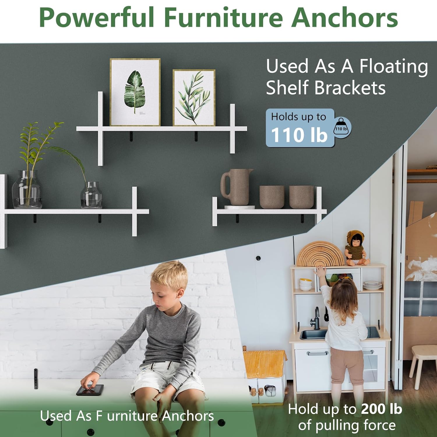 - [FURNITURE ANCHORS for BABY PROOFING]: The furniture anchors are specially designed to prevent cabinets, bookcases and dressers from being pulled down by baby or pets, providing a secure environment for baby to prevent potential injuries, the furniture anchor can also protect your furniture.